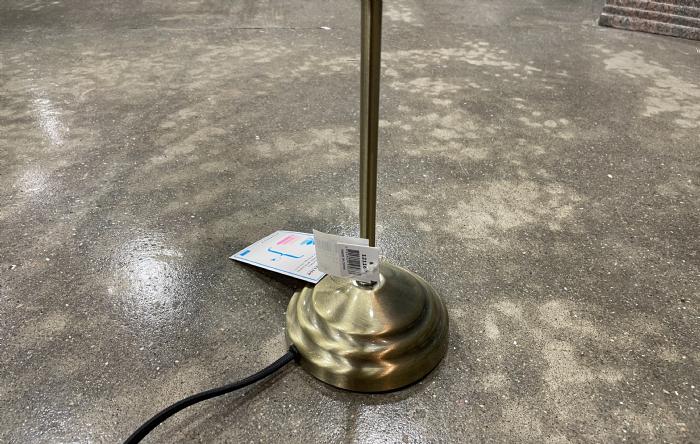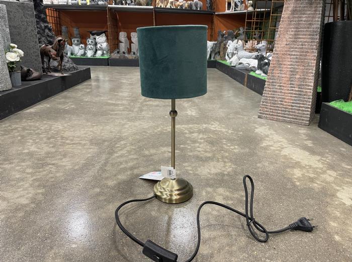 Bordlampe med sort eller grøn lampeskærm med gyldent stel