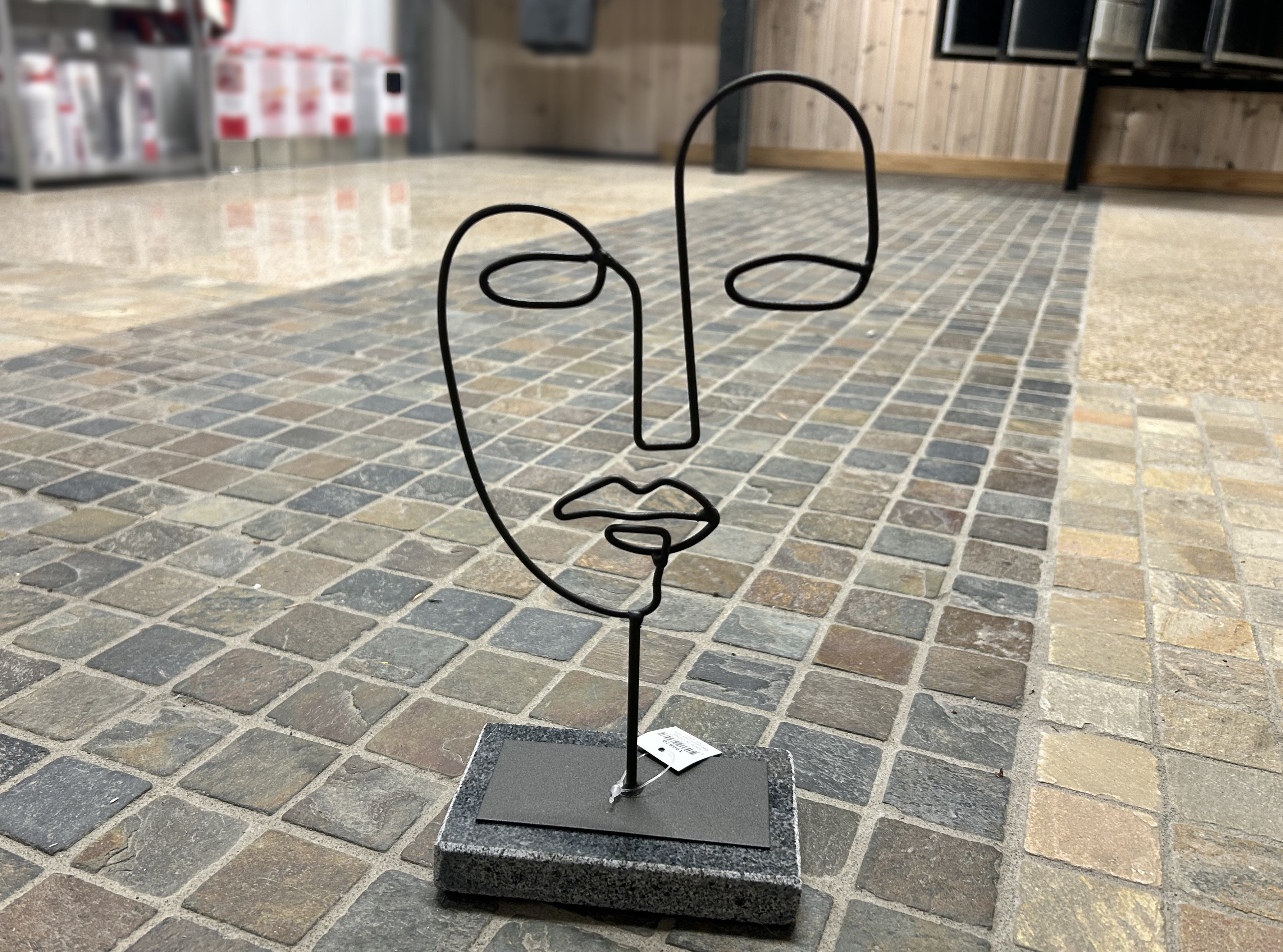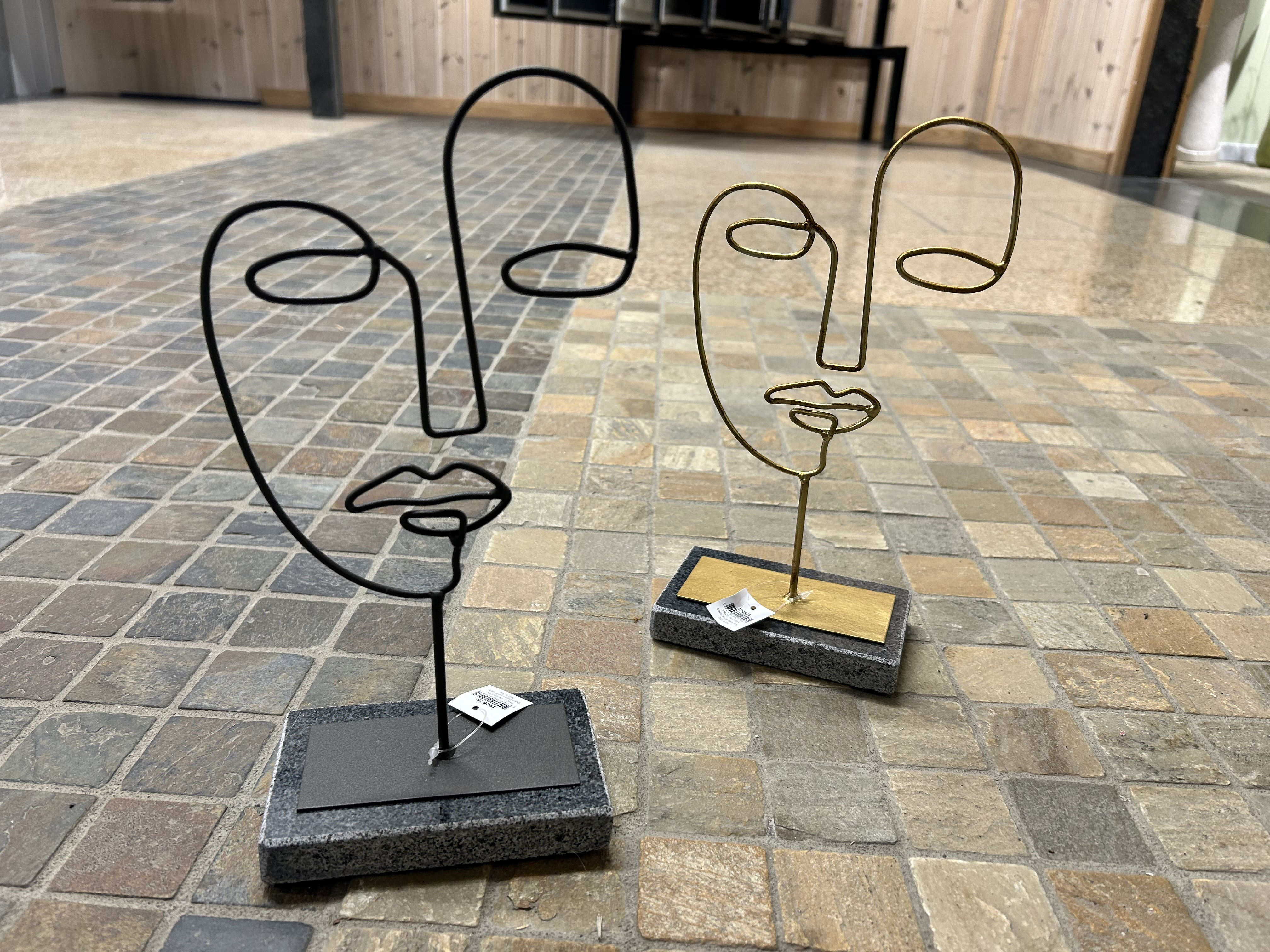 Tråd ansigt på granitsokkel, som fås enten i mat sort eller blank gylden. Tråd ansigterne er fastgjort på en gråsort granitplade.