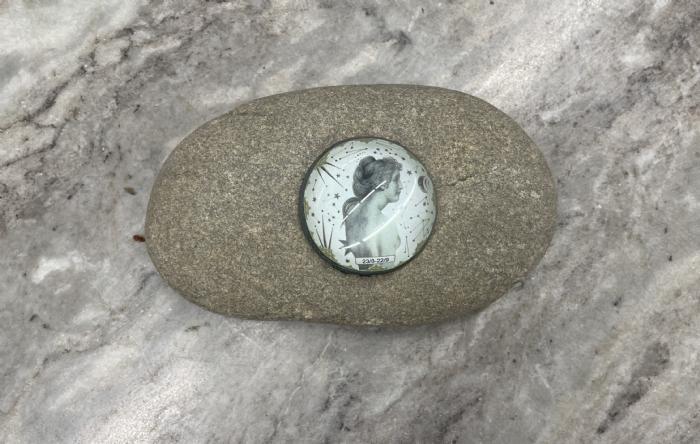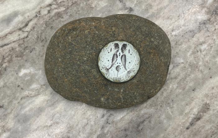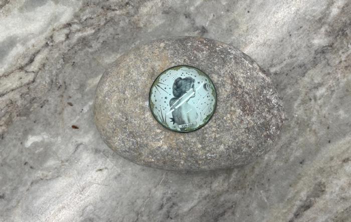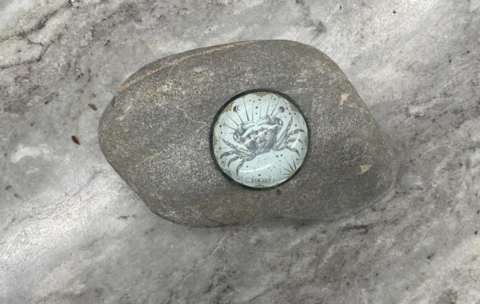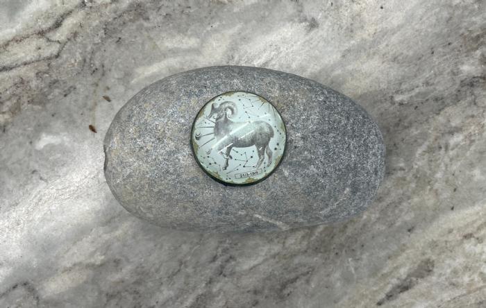 Strandsten med stjernetegn i glas - stjernetegnene er limet på stenen