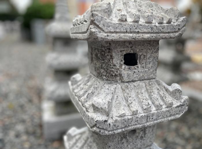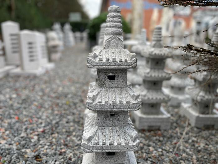 Japansk inspireret pagode i lysegrå granit.