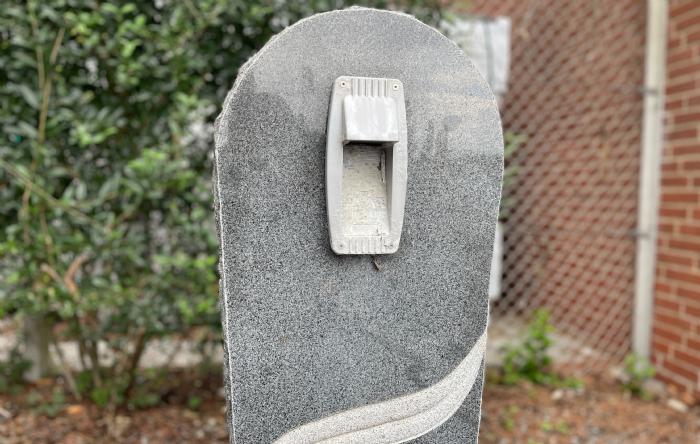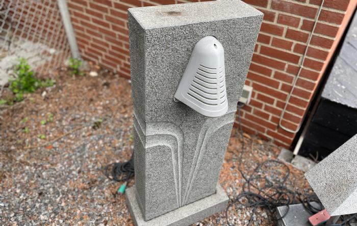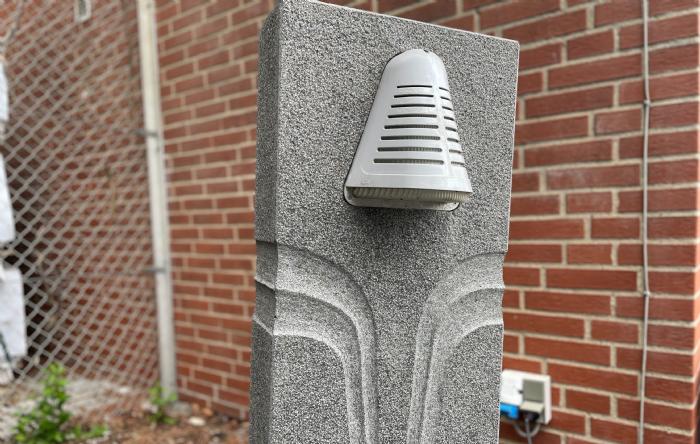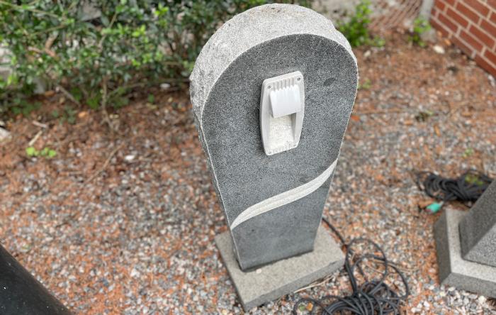 Lamper lavet i granit, monteret på en sokkel