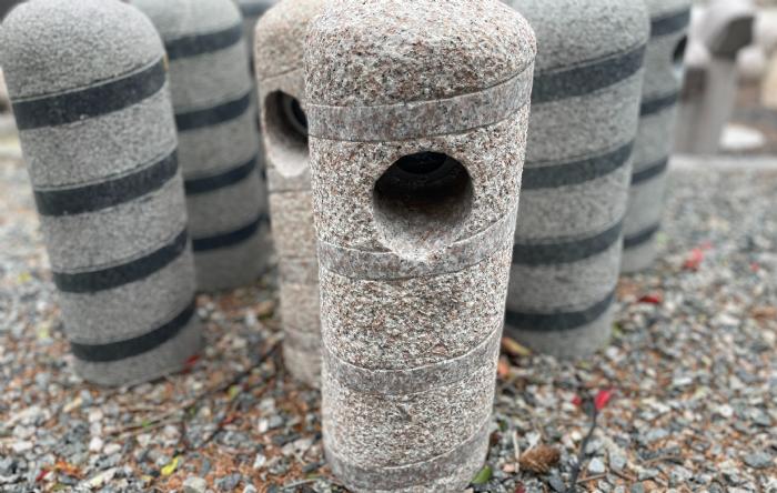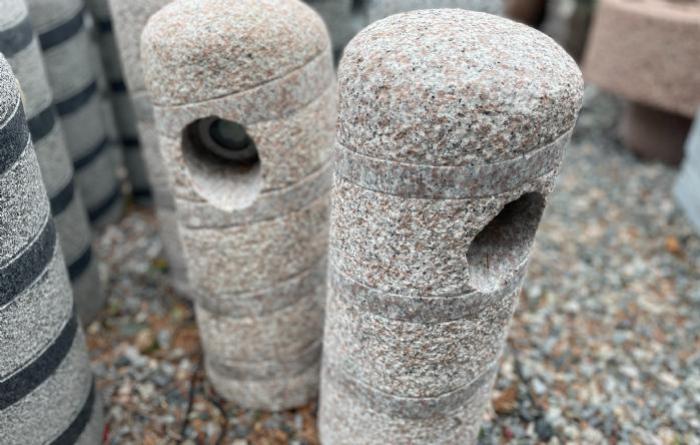 Produceret i gråsort og rosa granit og med poleret stribe/spiral.