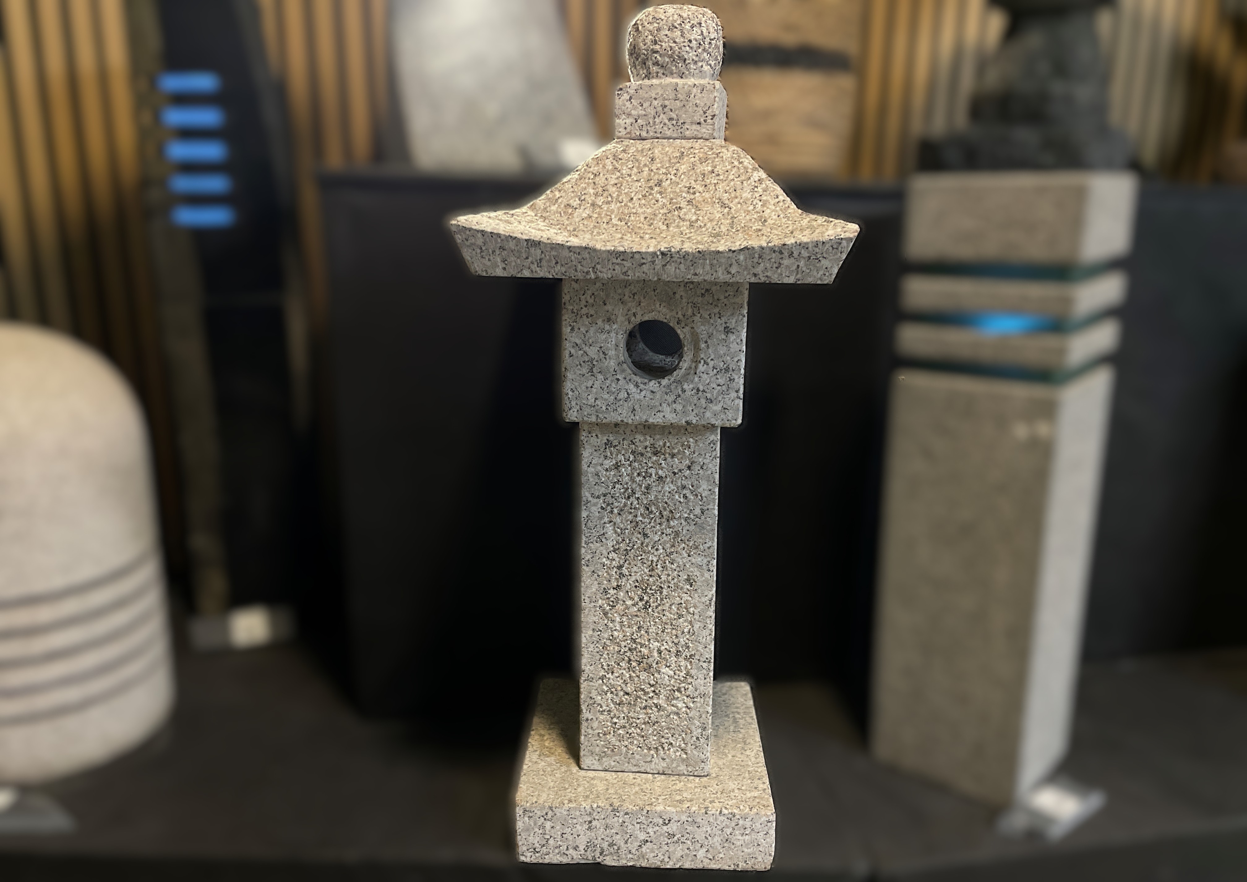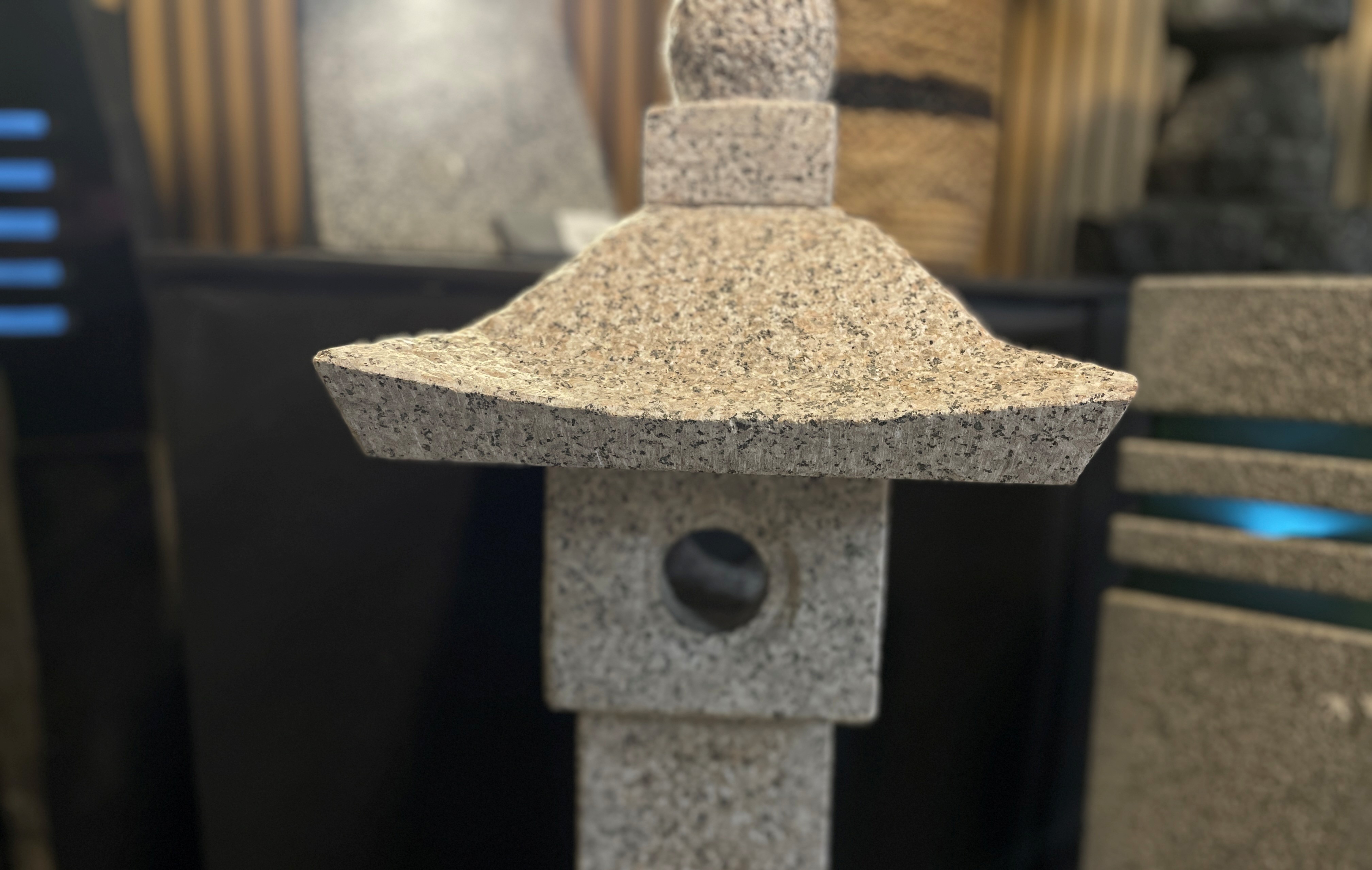 Traditionel japansk inspireret havelampe/lygtehus i rosa granit med stokhugget overflade