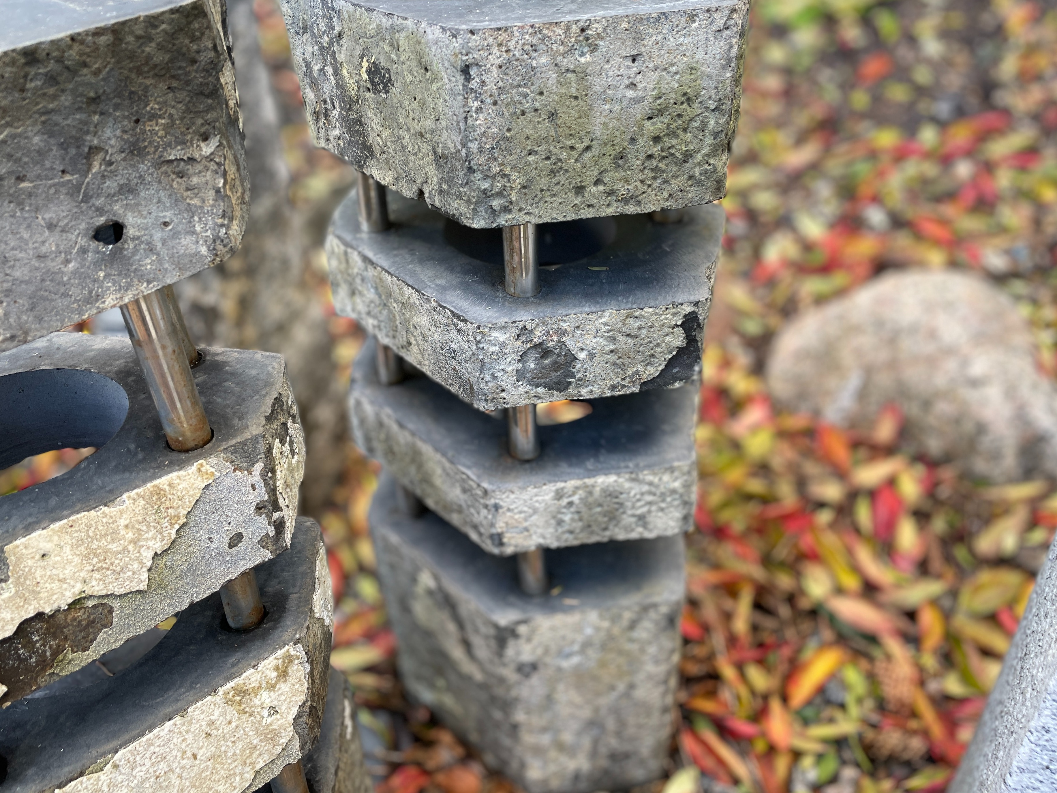 Lampe lavet i basalt - opdelt i flere lag og med metal detaljer. Lamperne er perfekte til at skabe lys ved huset og på terrassen, og vil med sine opdelte lag lyse godt op.