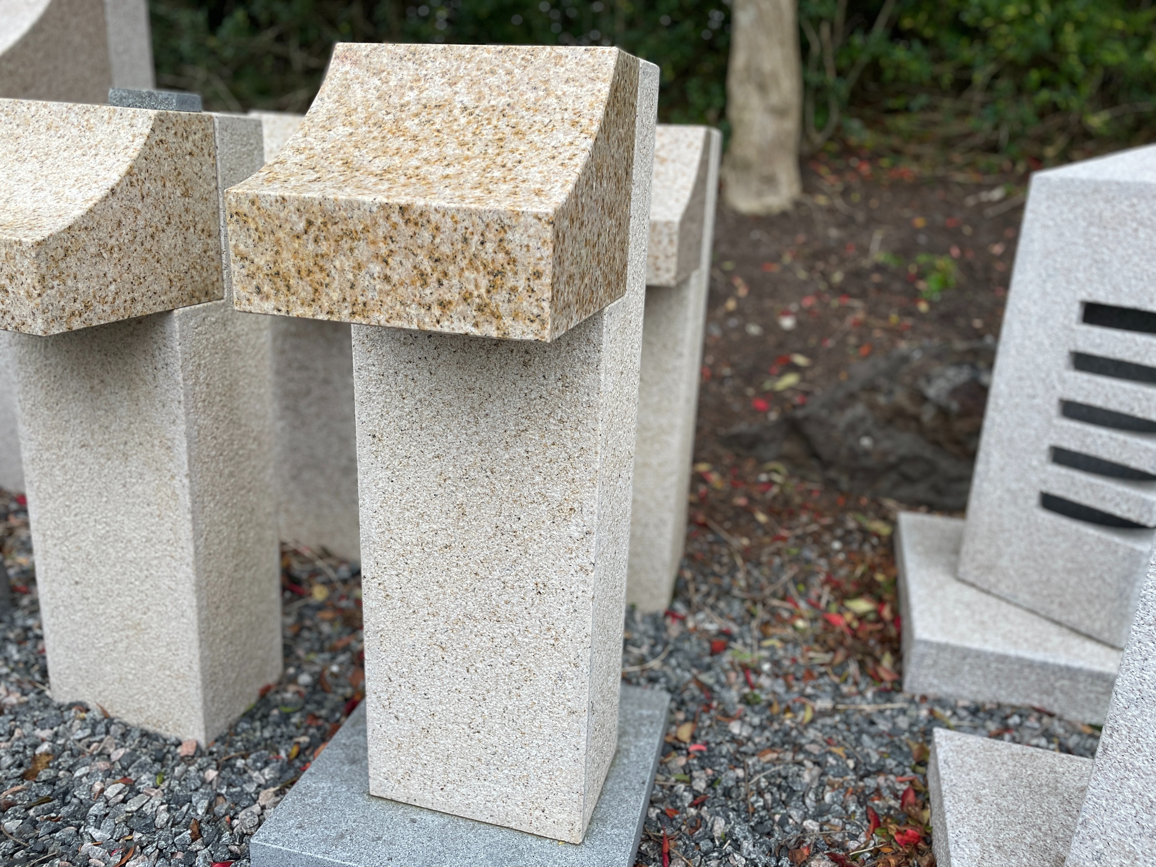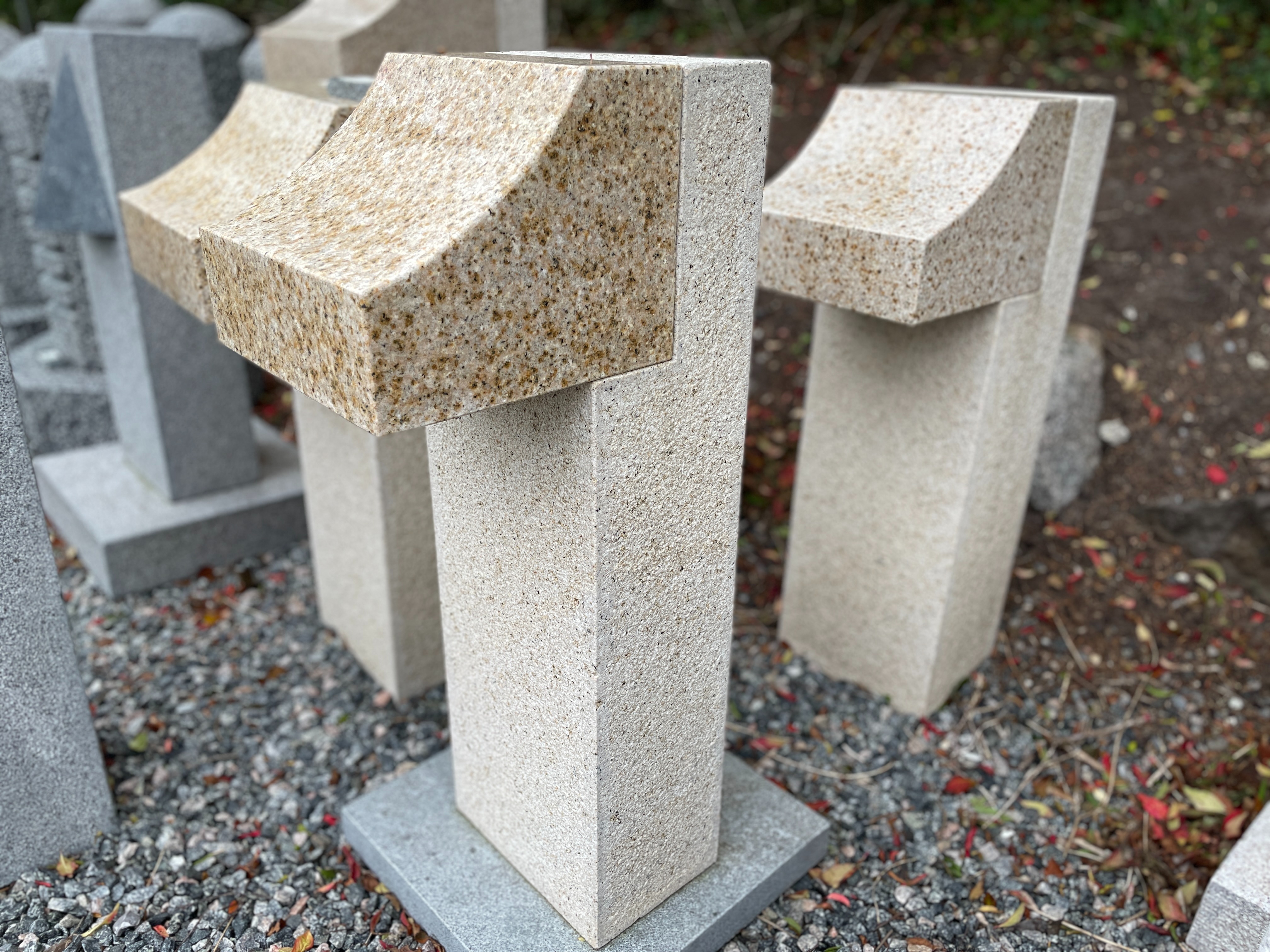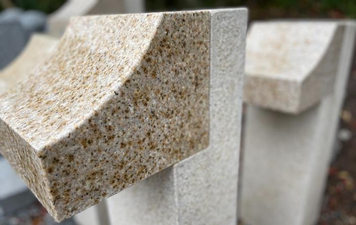 Granithavelampe i gult granit. Granitten har et farvespil der går fra cremefarvet til nougat orange gul farve.
