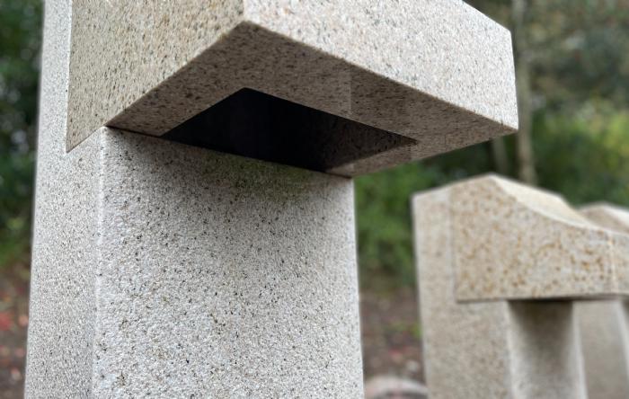 Granitlampen er formet som et 1-tal med en poleret serif på toppen se billeder.