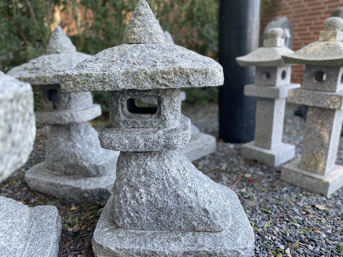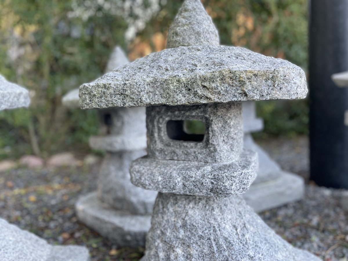 Japansk inspireret lampe, som er udhugget i grå granit. Lampen har kløvet og ru overflade, som giver den et rustikt udtryk.