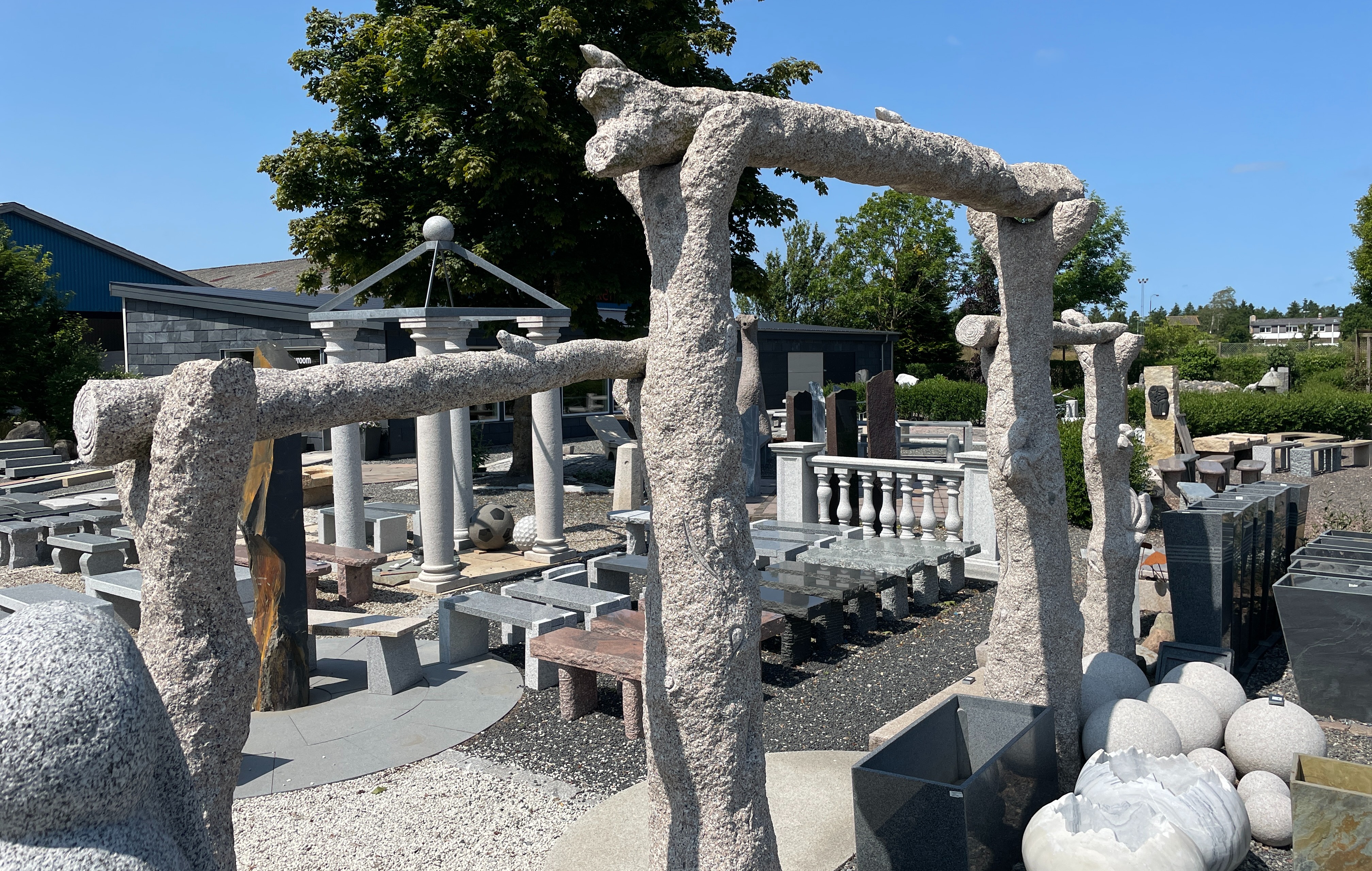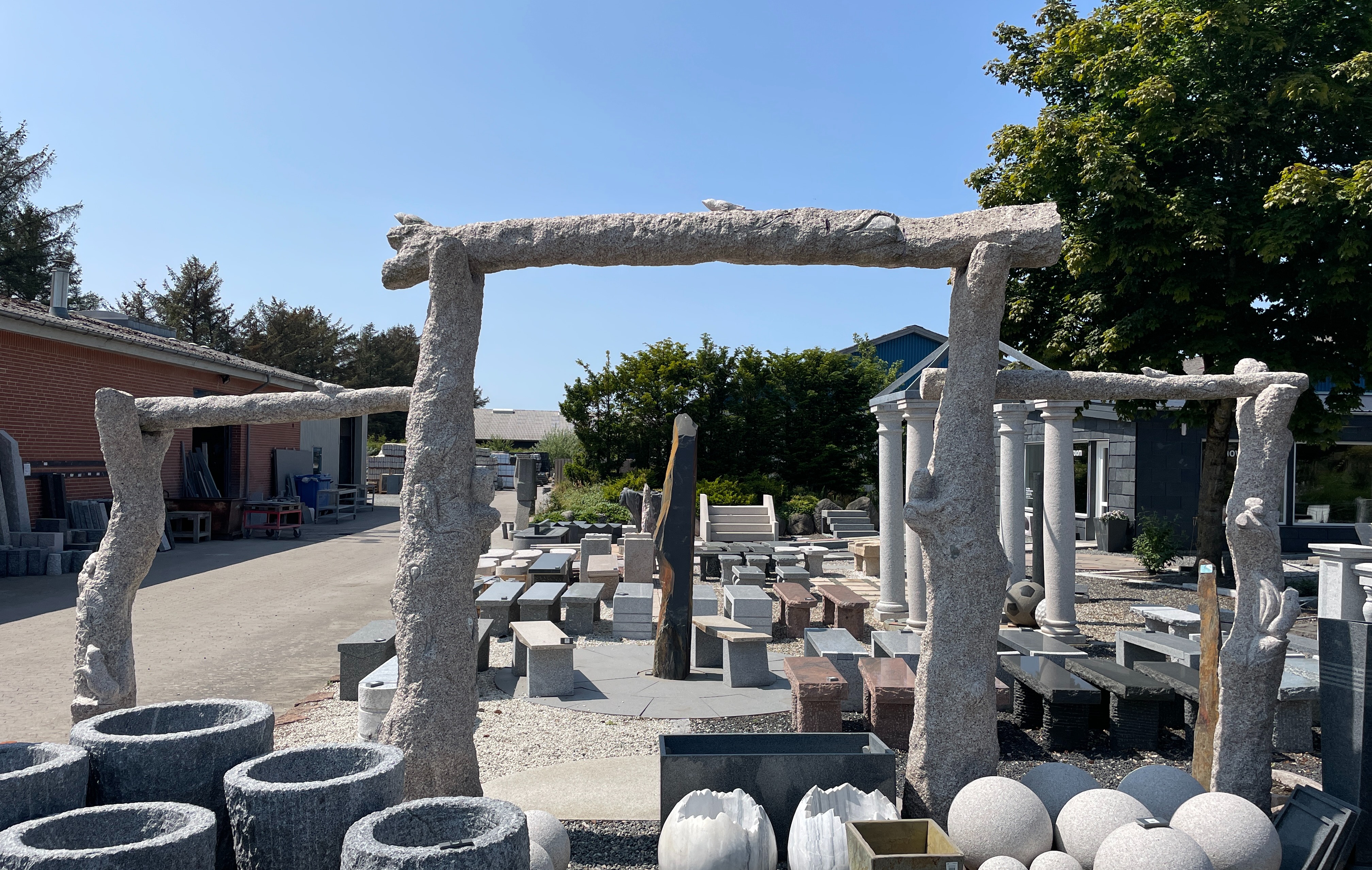 Denne port i rosa granit har tre ind- og udgange og egner sig perfekt til større parkarealer eller haver.