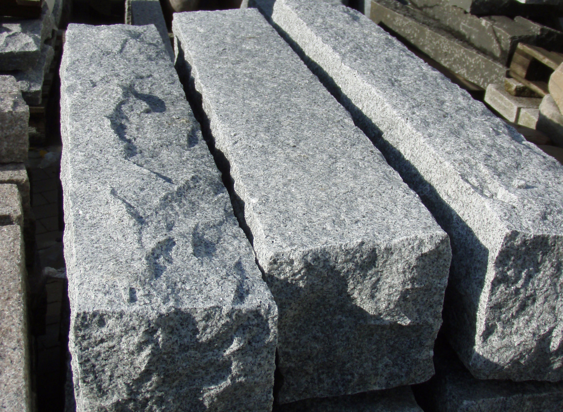 Råkløvet lys grå granit pullert/søjle. Søjlen har mange anvendelsesmuligheder, da den for eksempel kan bruges som sokkel til en figur eller solur.