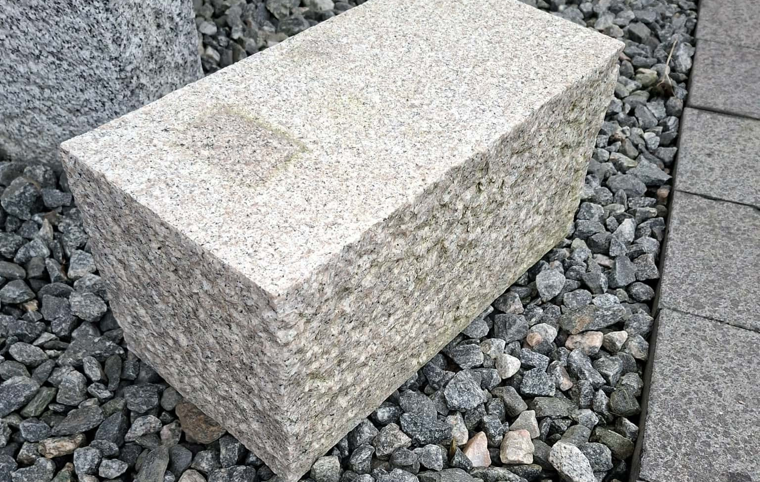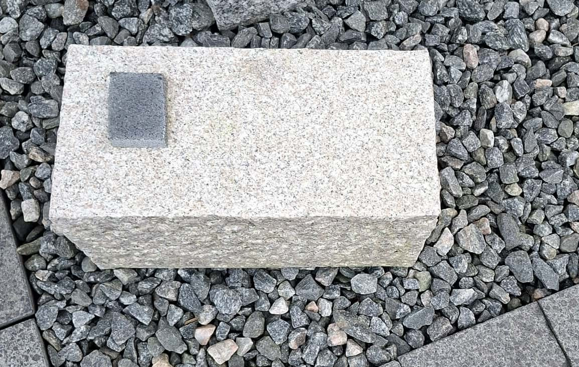 Firkantet sokkel i rosa granit.Soklen bruges liggende, og er velegnet til figurer eller blomsterkrukker som man ønsker at give en højde - man kunne eventuelt lægge flere efter hinanden og danne en afgrænsning.