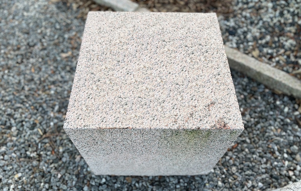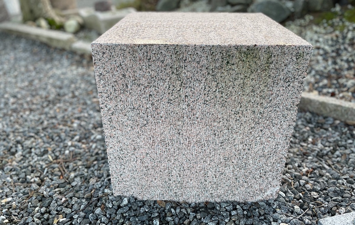 Kvadratisk sokkel lavet i rødlig granit.