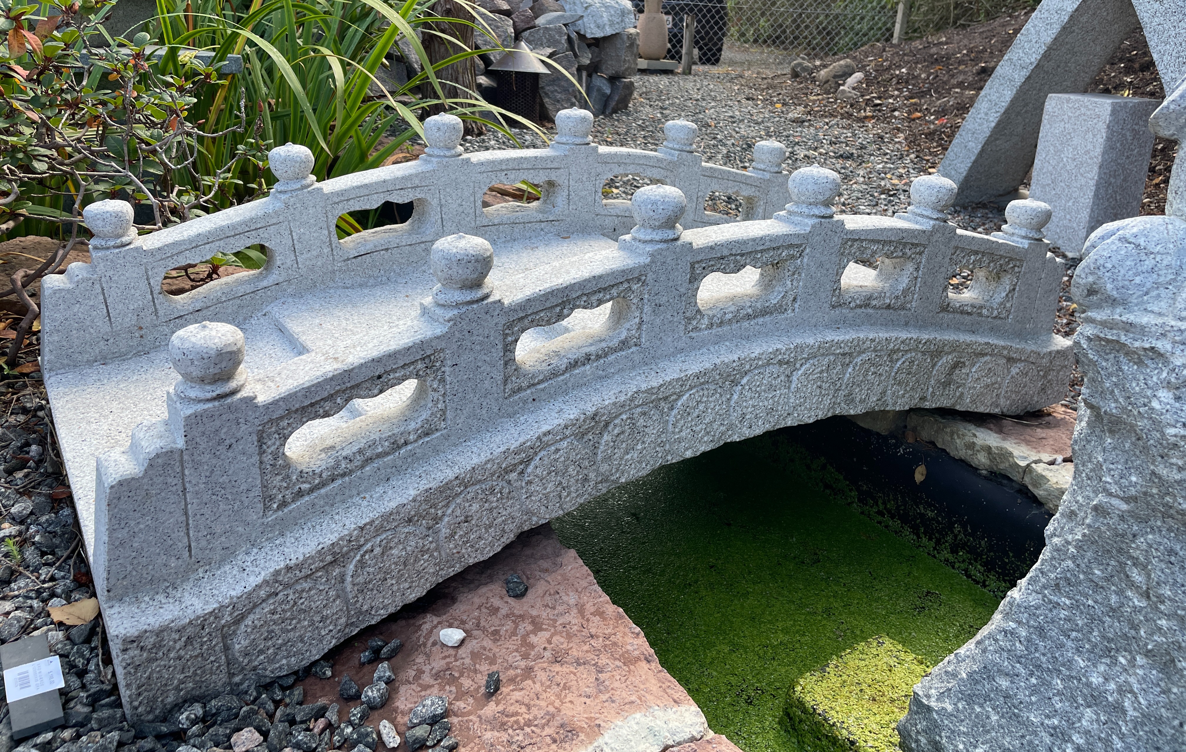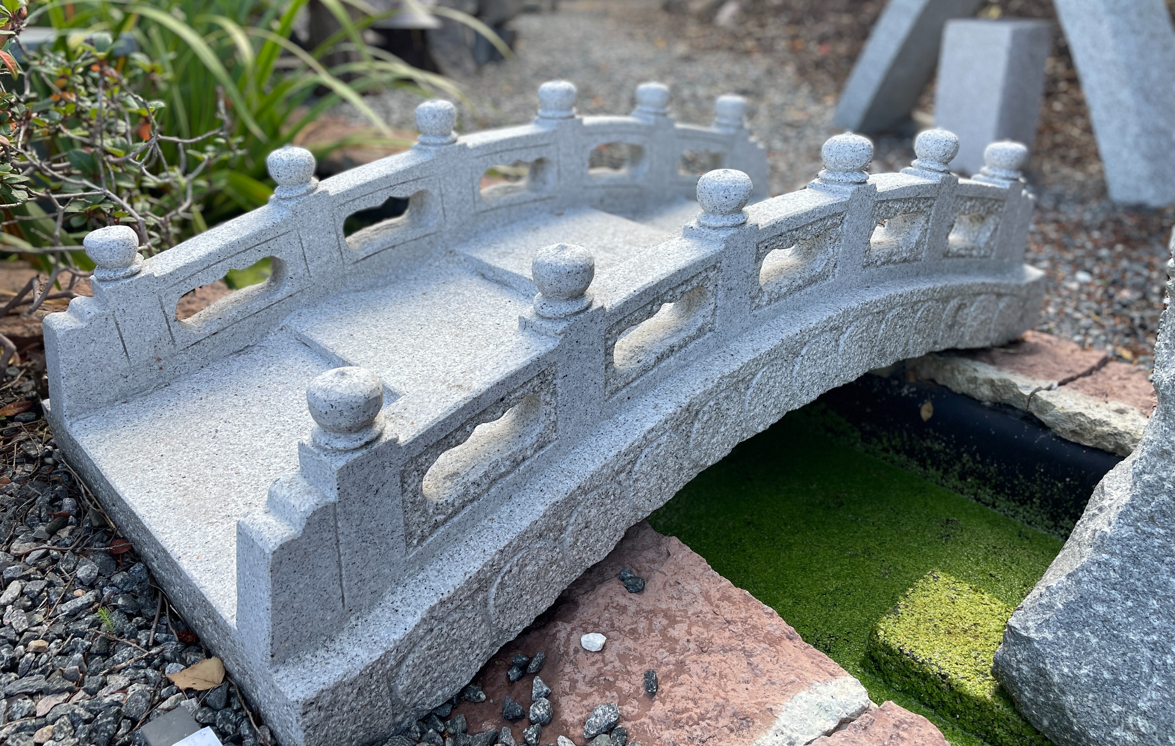 Bro udformet i lysgrå granit perfekt til stisystem omkring vand i din have.