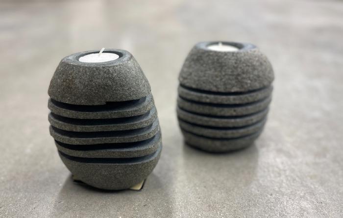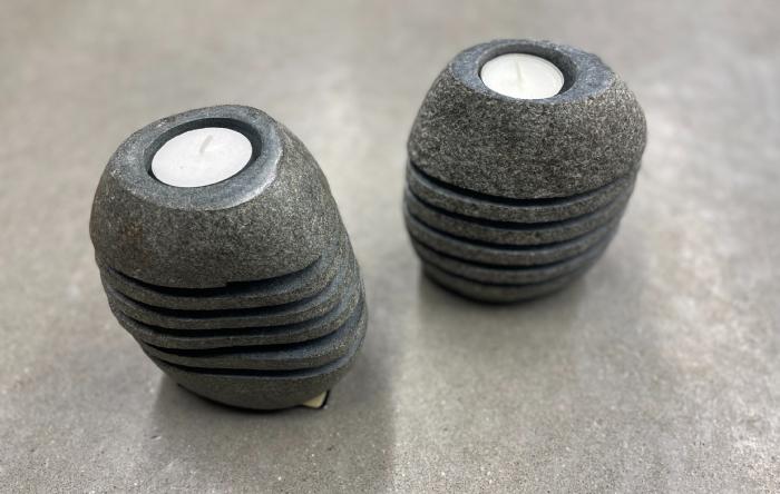 Abstrakte og unikke fyrfad, som er delt op i flere dele.
