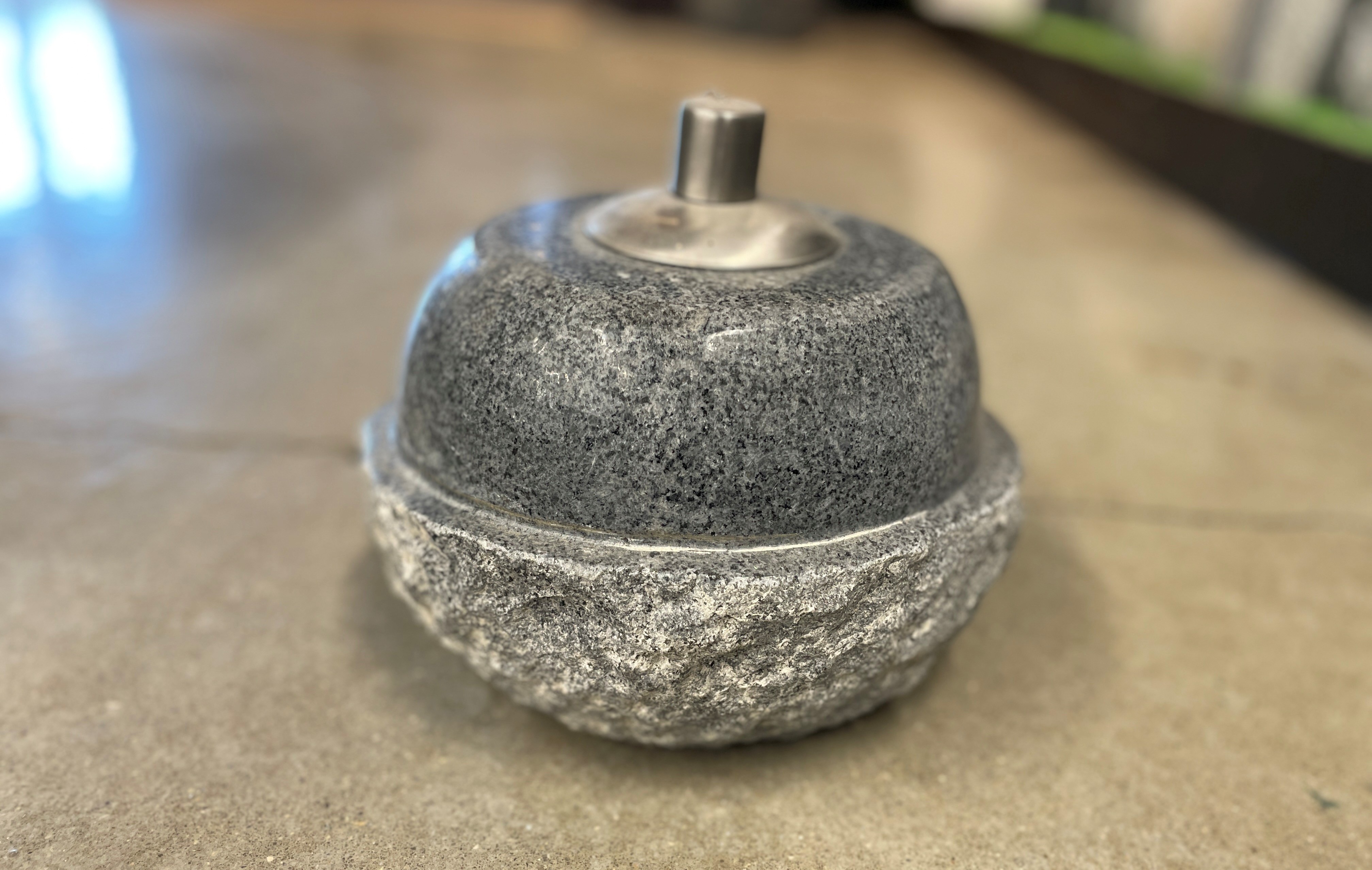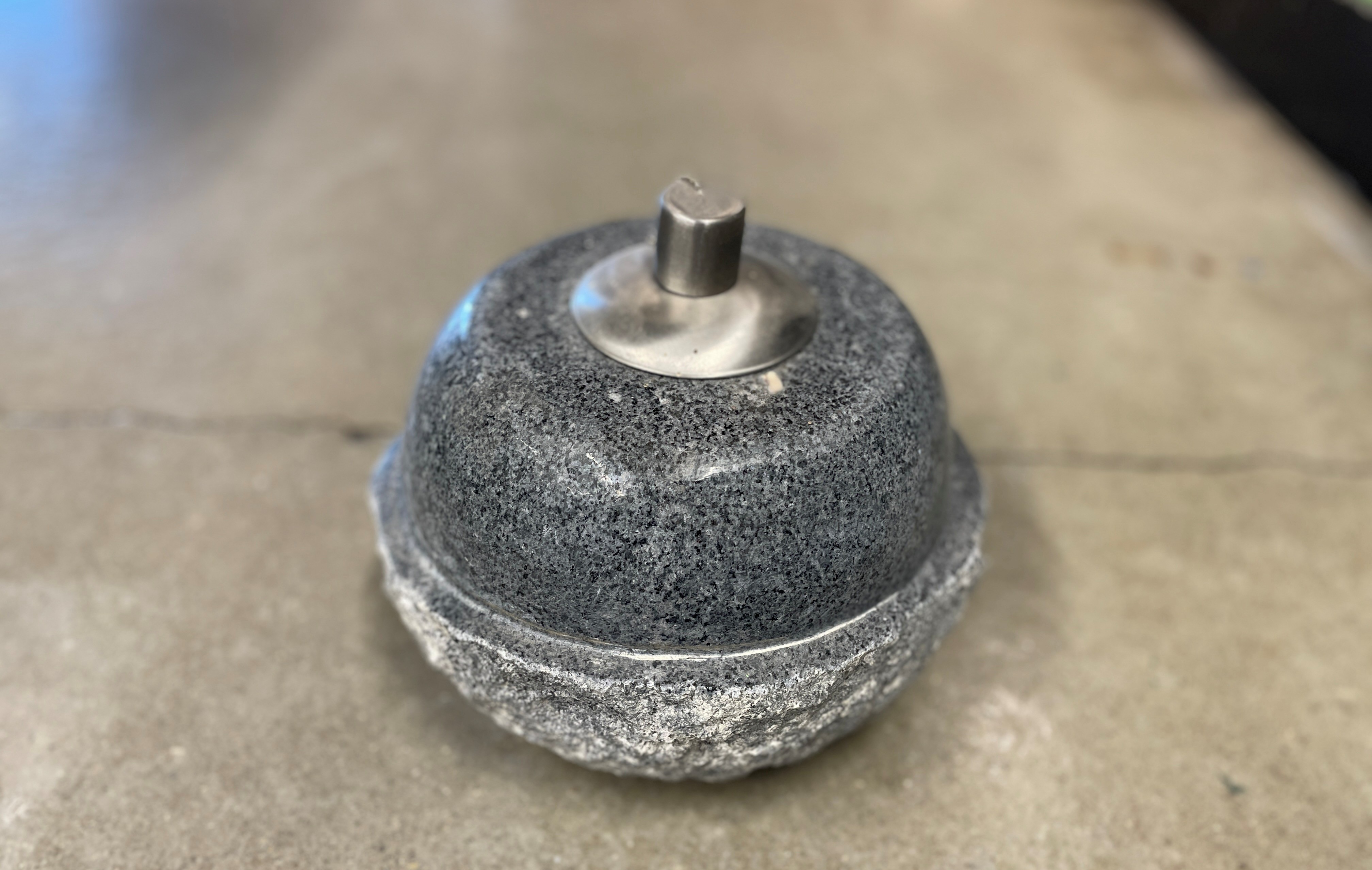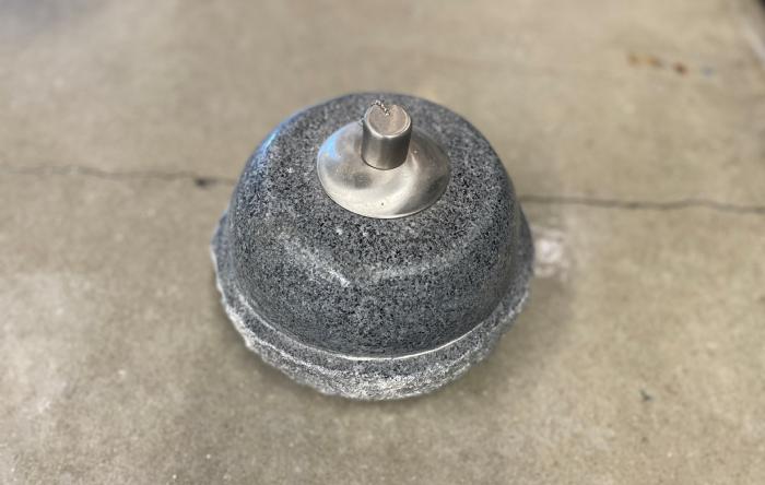 Virkelig smuk og rustik olielampe produceret i gråsort granit. Olielampen er rund og har en fin poleret top og er råkløvet/rustik på nederste halvdel..
