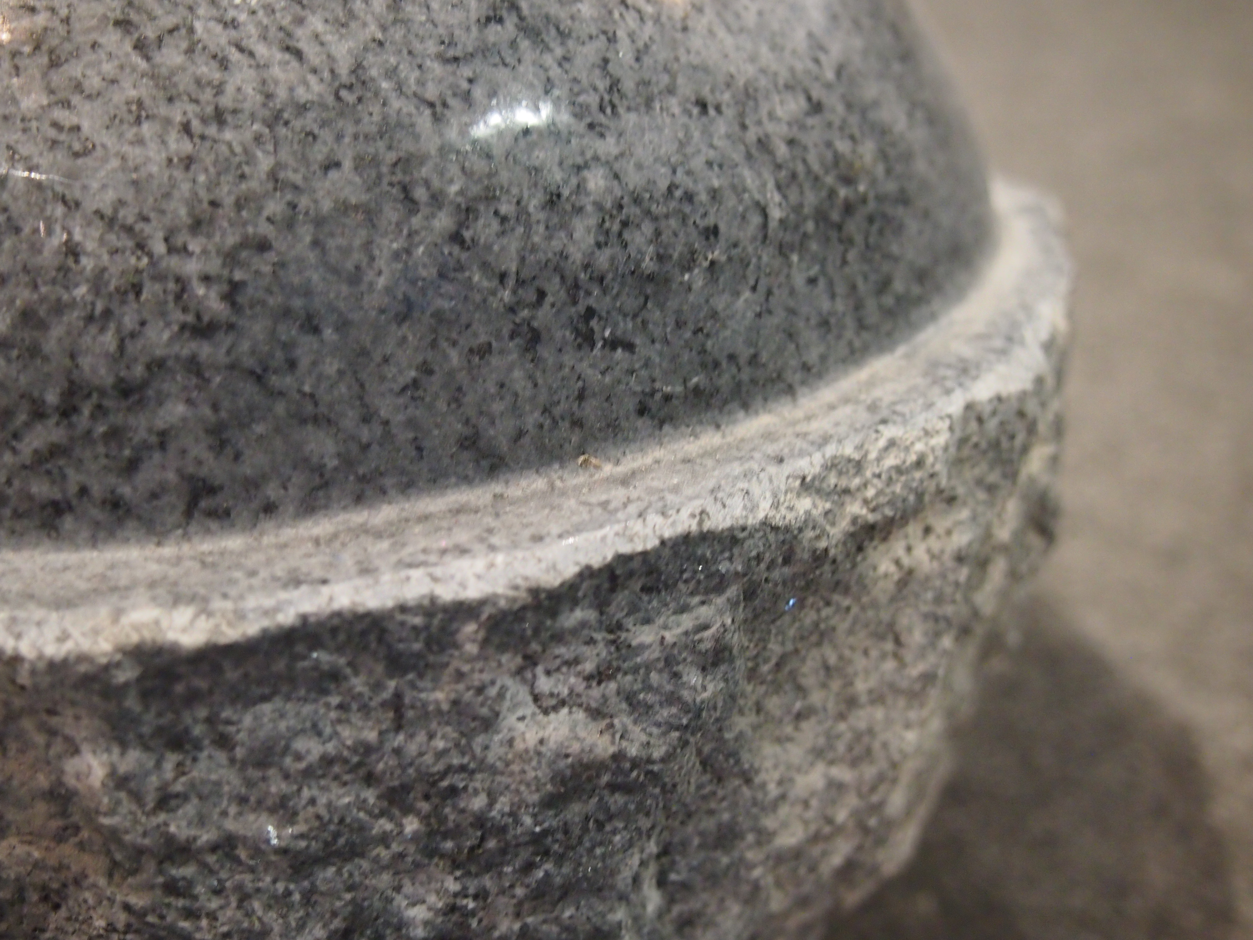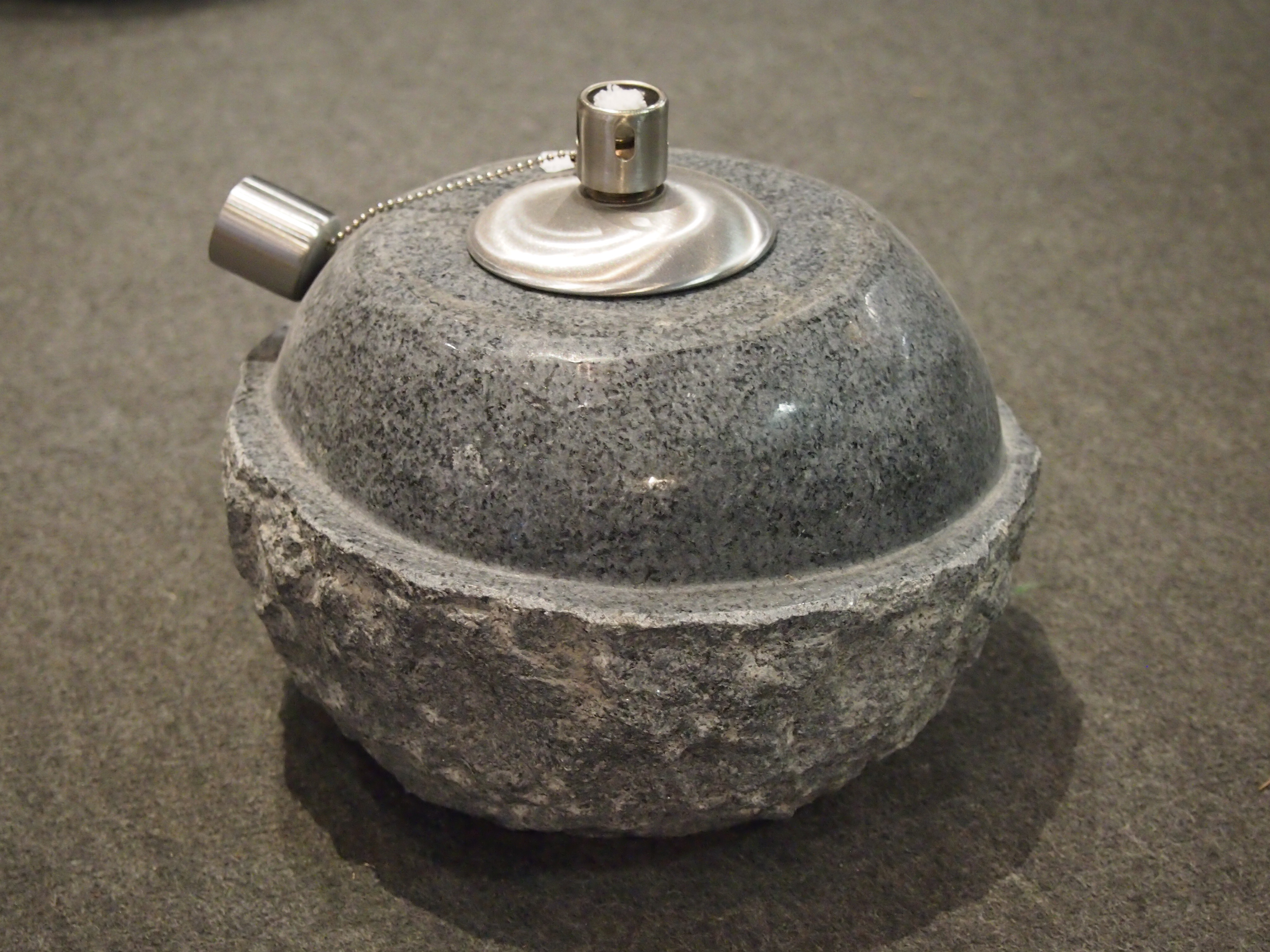 Virkelig smuk og rustik olielampe, produceret i gråsort granit. Olielampen er rund og har en fin poleret top og er råkløvet/rustik på nederste halvdel..