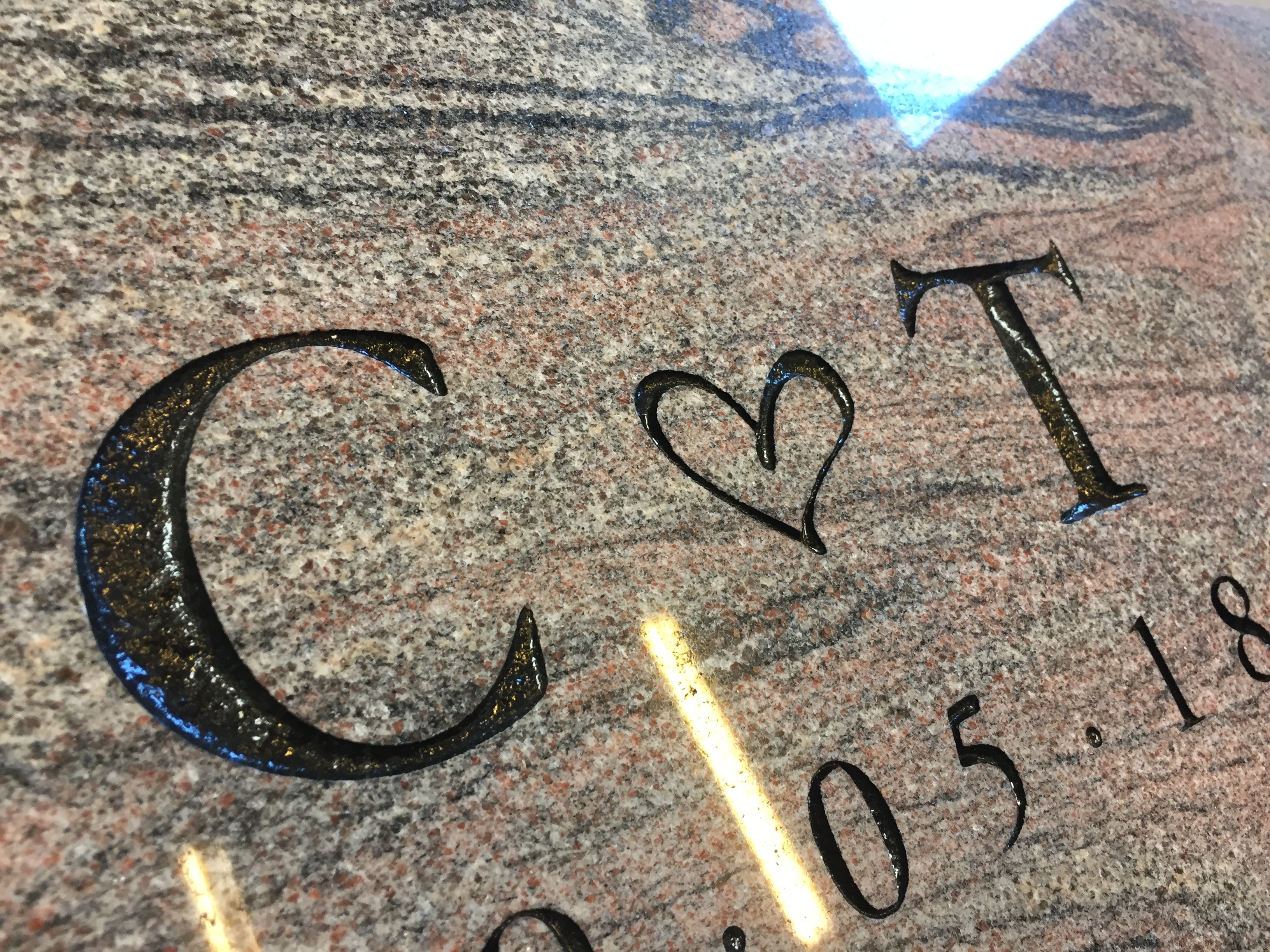 Vi kan lave inskription i de fleste produkter - undtagen hvis produktet skal anvendes som gravsten.