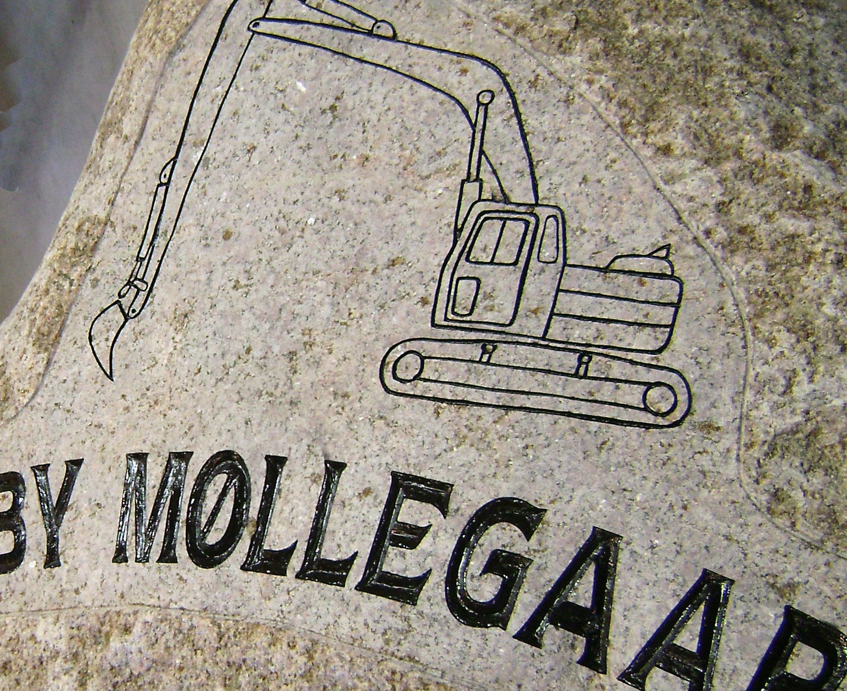 Få indhugget en helt personlig tekst, et logo eller en tegning på et valgt granitprodukt.