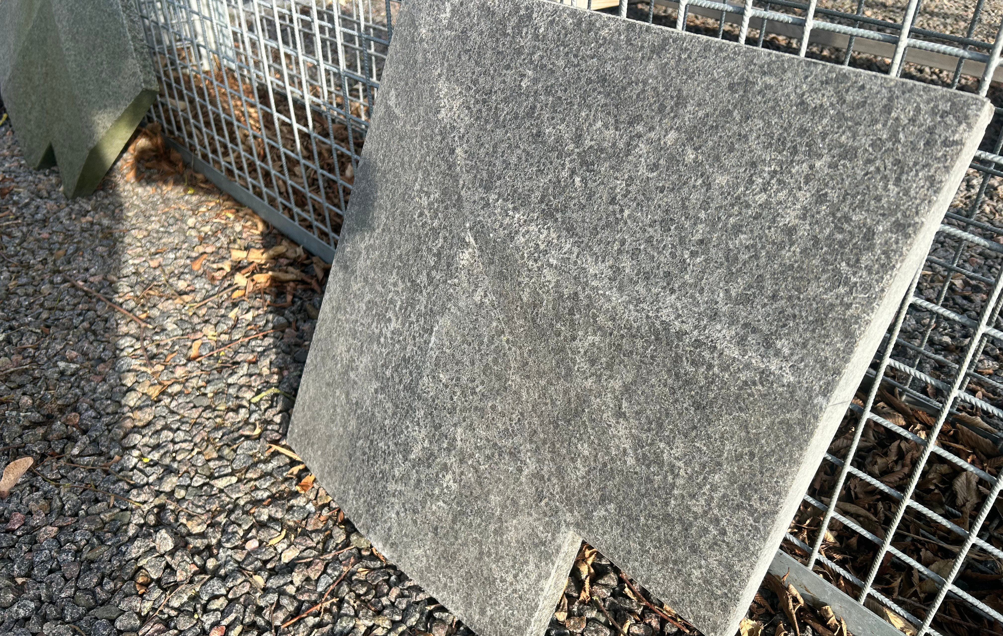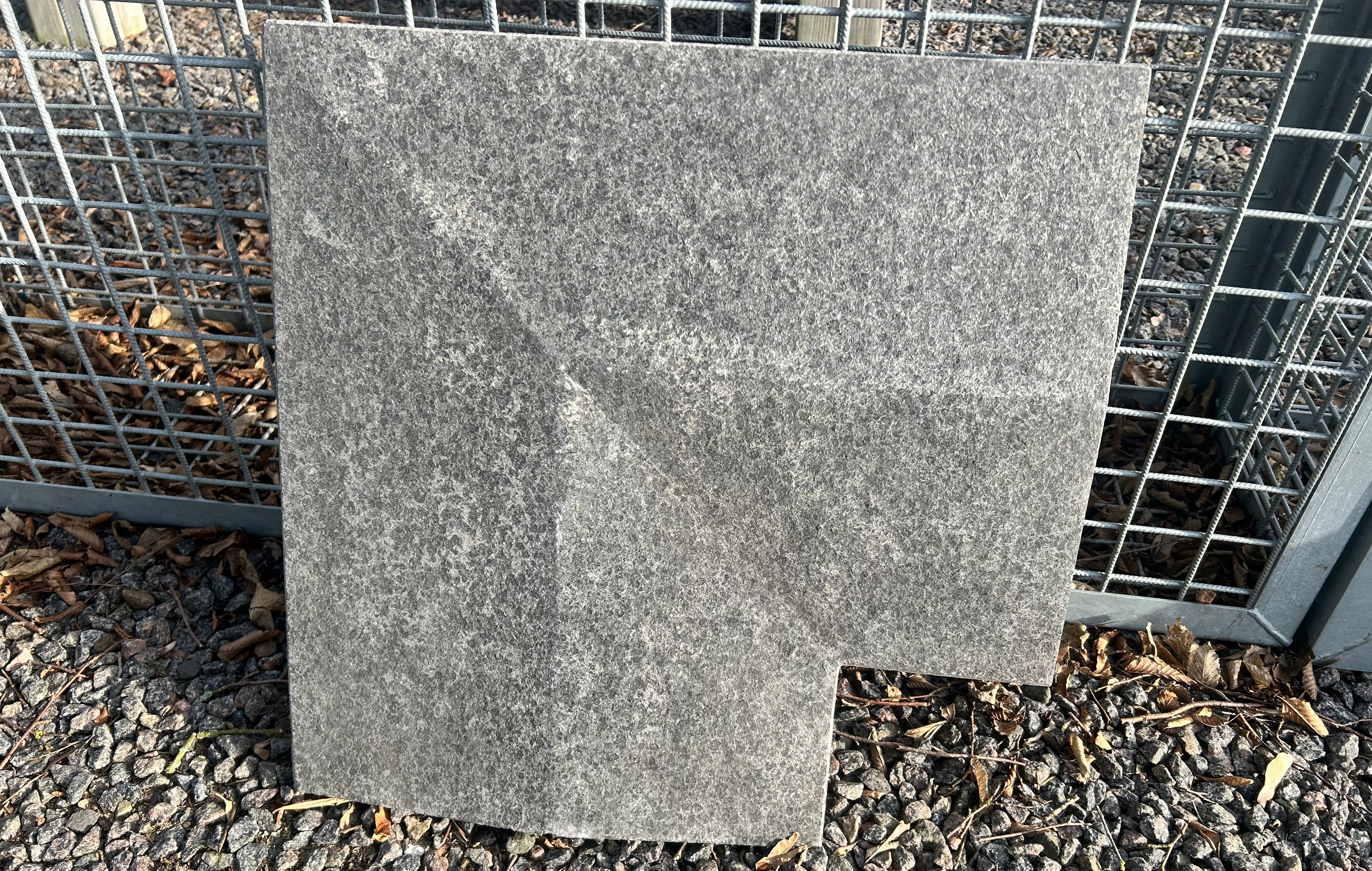 Murafdækning i sort basalt med jetbrændt overflade. Måler ca. 36 x 49 x 4,5 cm. Hjørnestykke der kan kombineres med lige og endestykker. Inkl. vandnæse ca. 1 cm fra kanten.