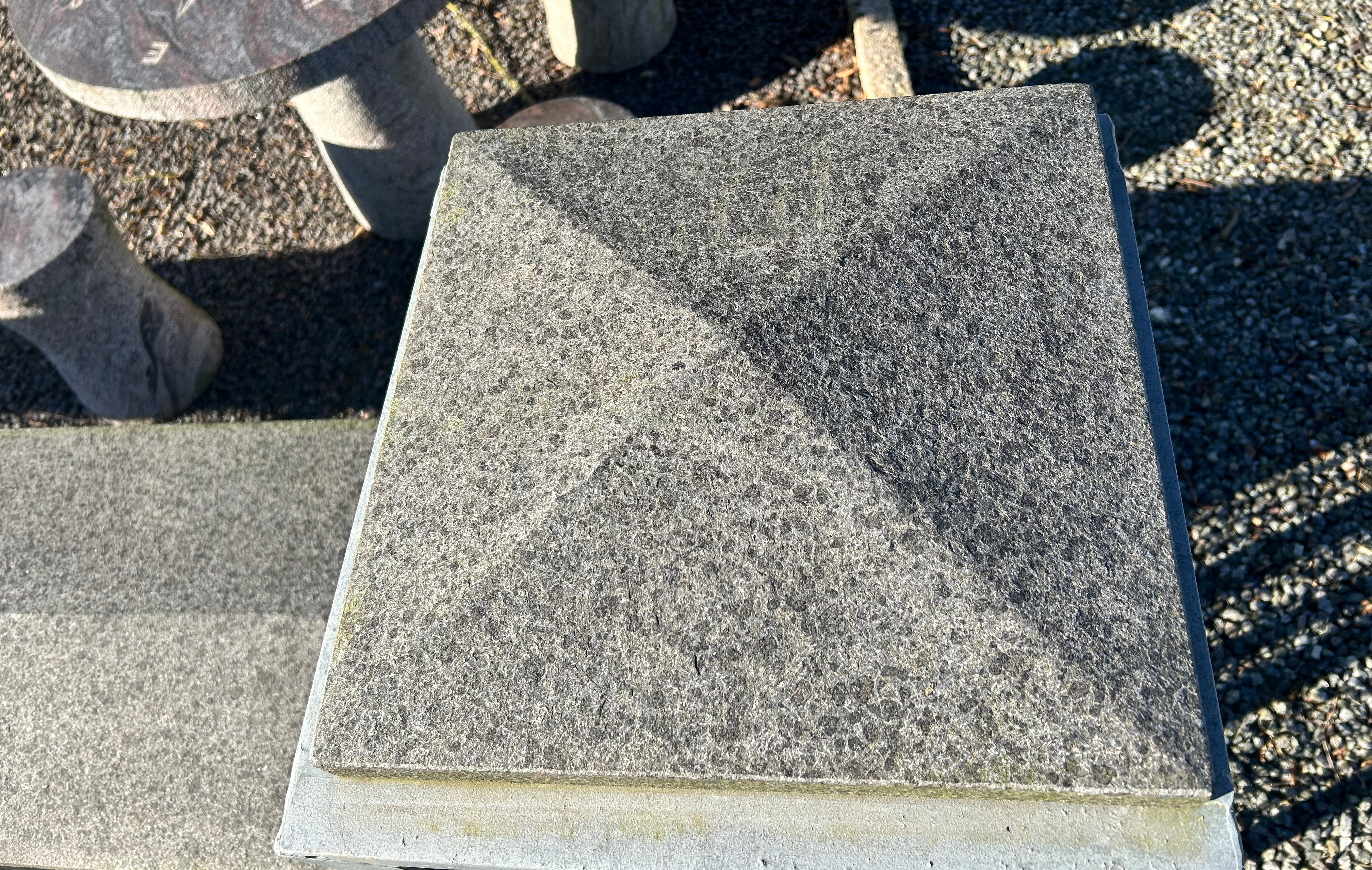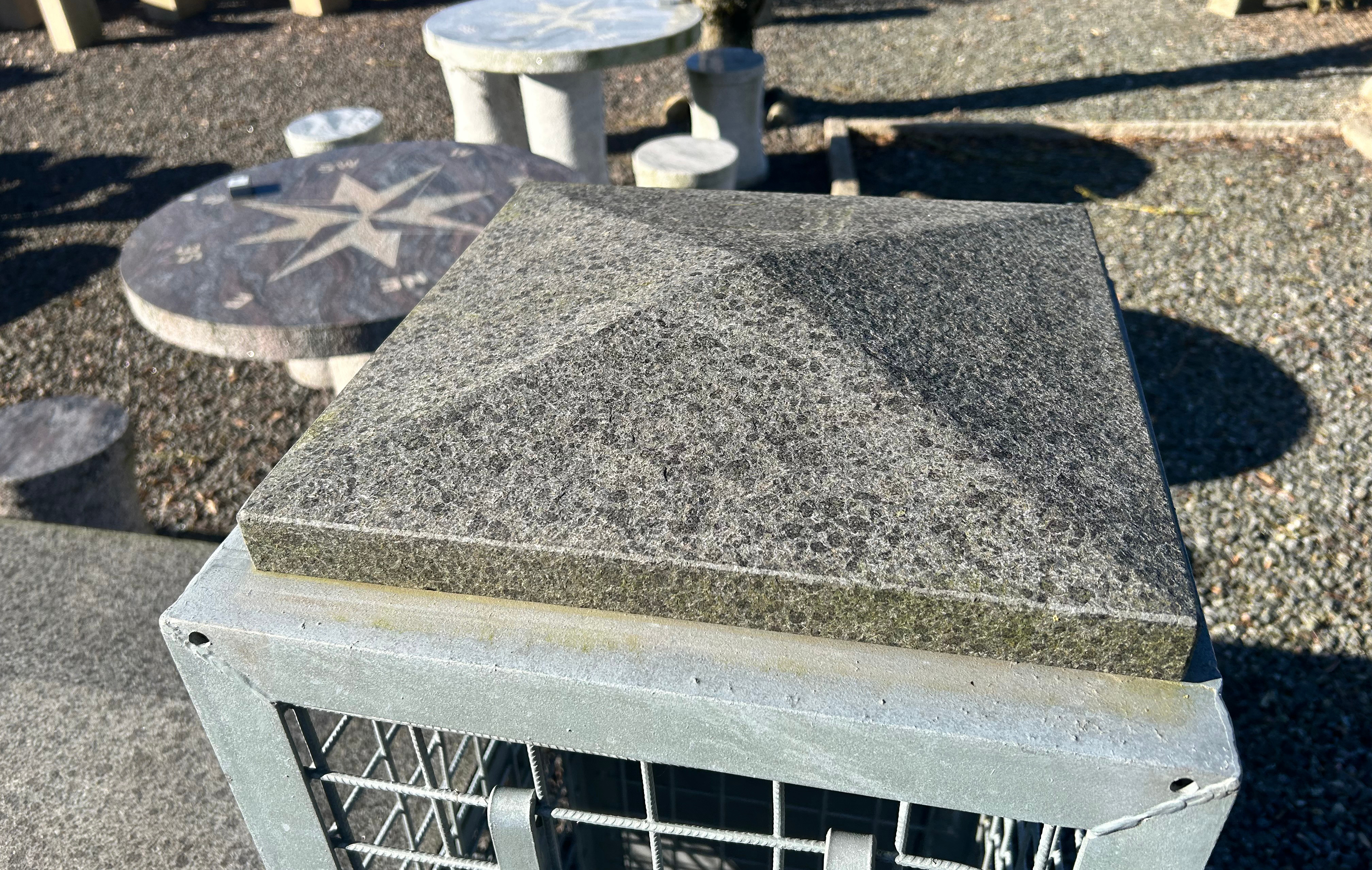 Murafdækning i sort basalt med jetbrændt overflade. Måler ca. 36 x 36 x 6,5 cm. Topstykket kan bruges på søjler eller lignende. Inkl. vandnæse ca. 1 cm fra kanten.