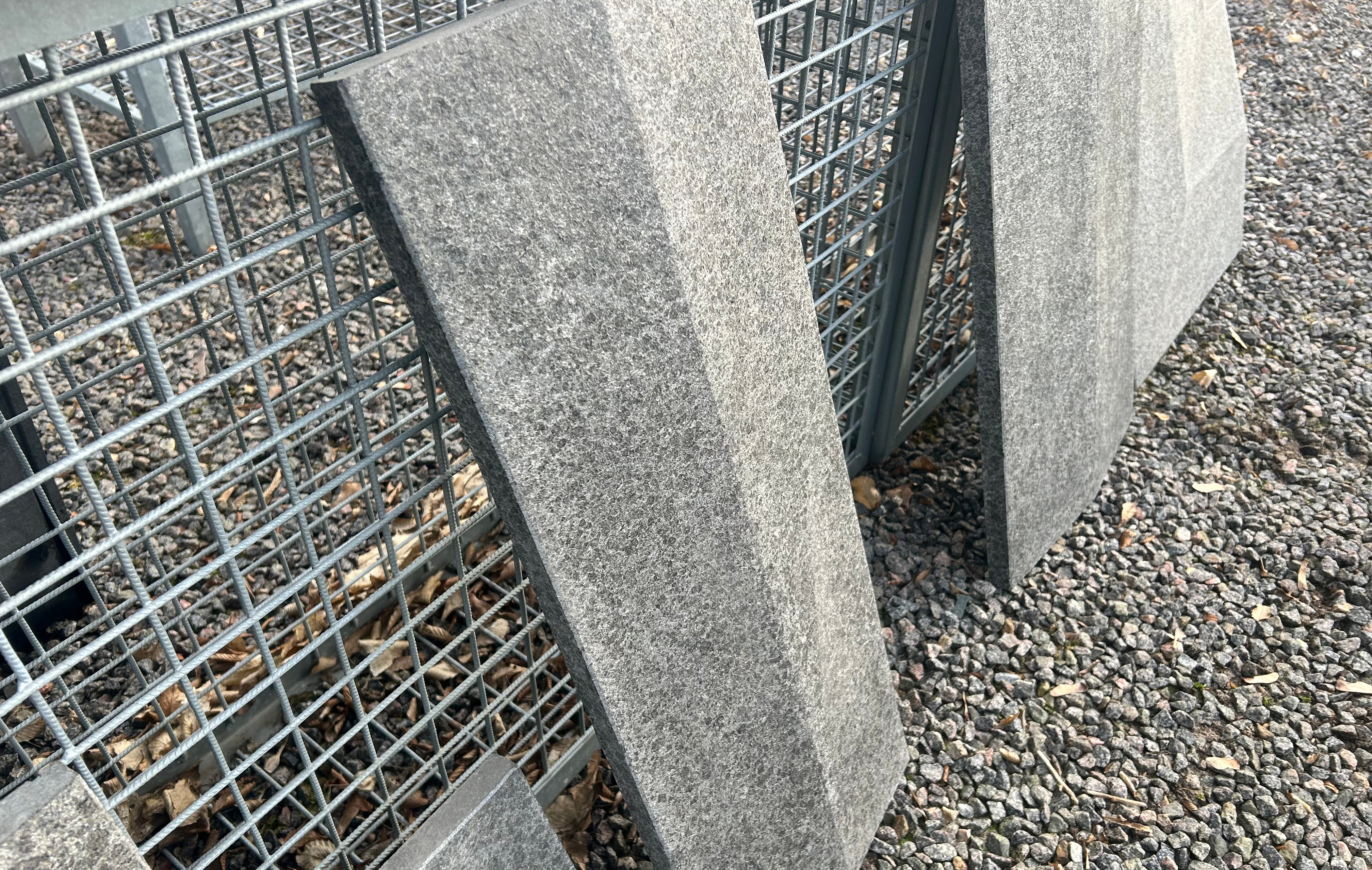 Murafdækning i sort basalt med jetbrændt overflade. Måler ca. 75 x 29 x 4,5 cm. Lige stykker der kan kombineres med endestykker. Inkl. vandnæse ca. 1 cm fra kanten.