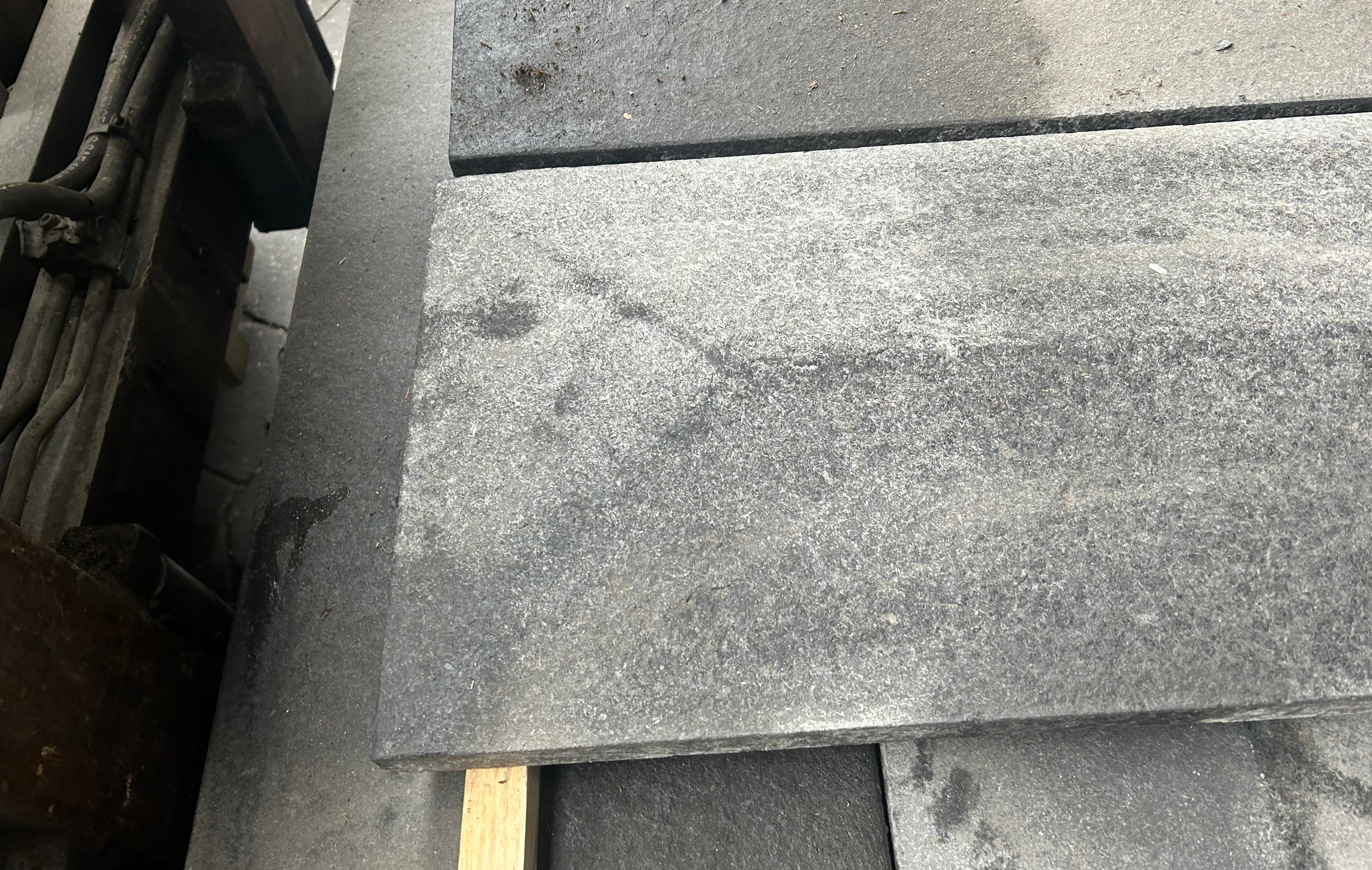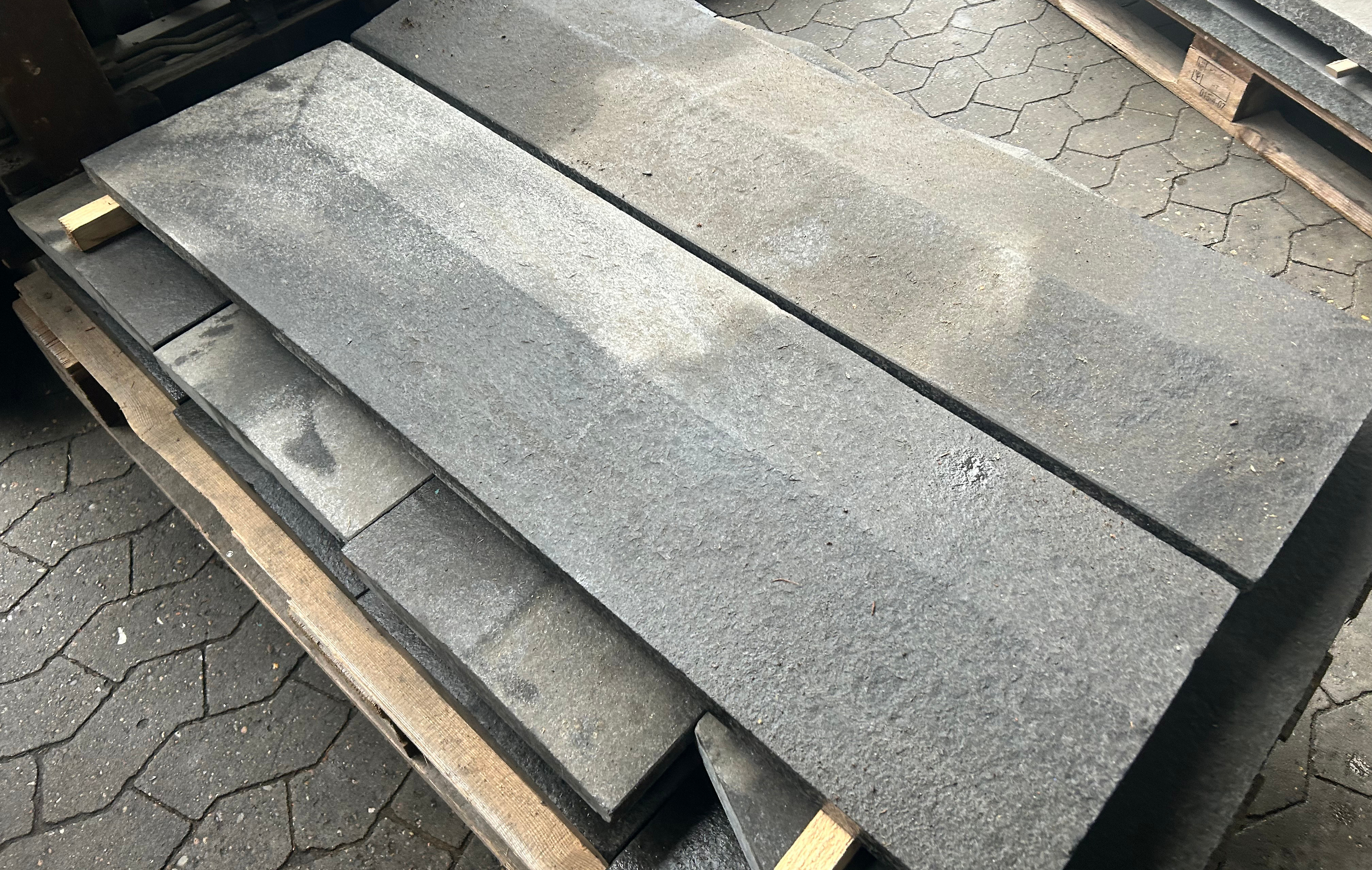 Murafdækning i sort basalt med jetbrændt overflade. Måler ca. 100 x 29 x 4,5 cm. Endestykke der kan kombineres med lige stykker. Inkl. vandnæse ca. 1 cm fra kanten.