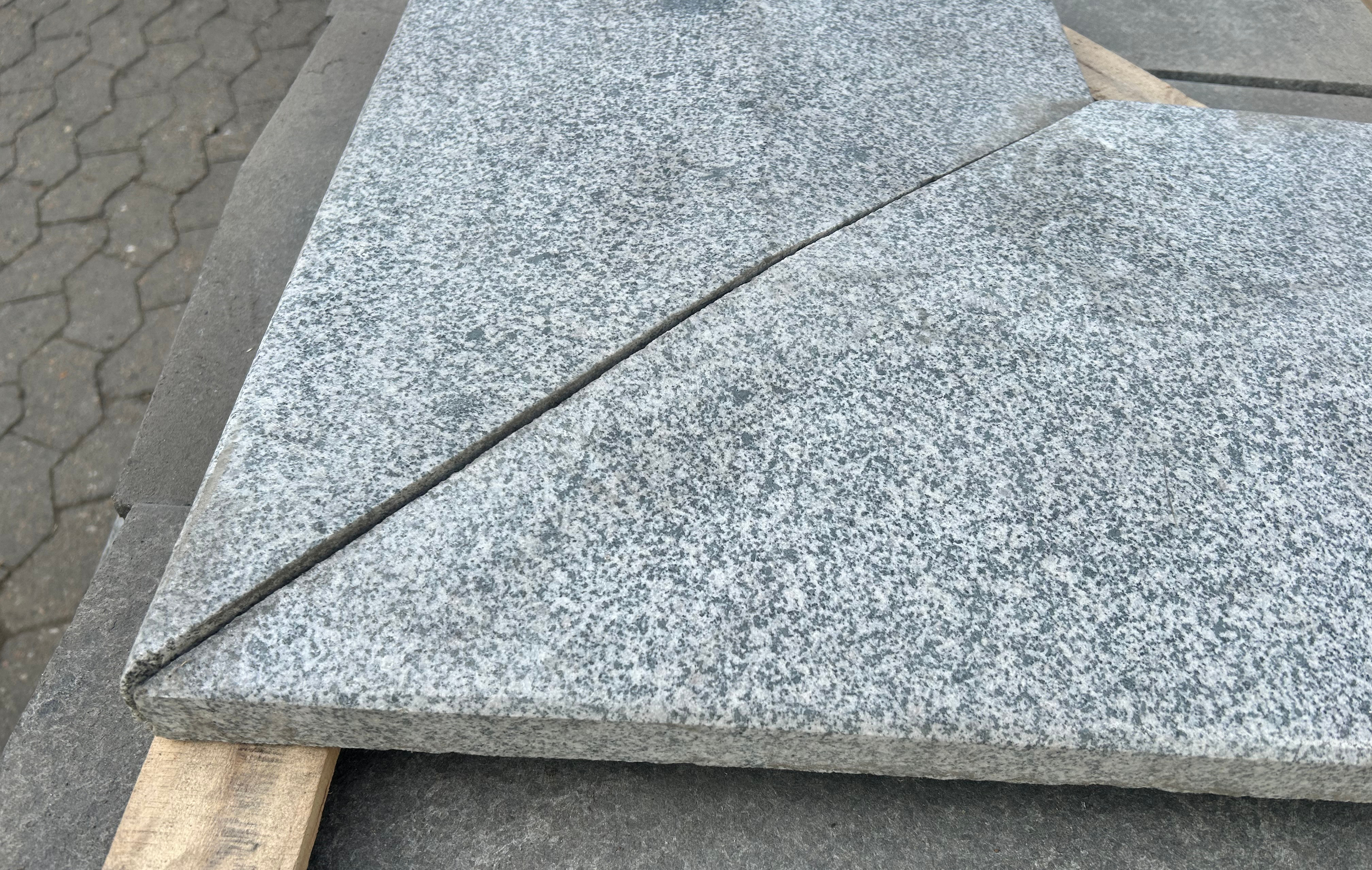 Murafdækning i lys grå granit med poleret overflade. Måler ca. 60/21 x 38 x 5 cm. Hjørne stykke der kan kombineres med lige stykker. Inkl. vandnæse. Hjørnet er skåret i 45 grader vinkel, så to stykker passer sammen til en 90 graders vinkel. Prisen er pr. stk - to stk. for samlet hjørne.