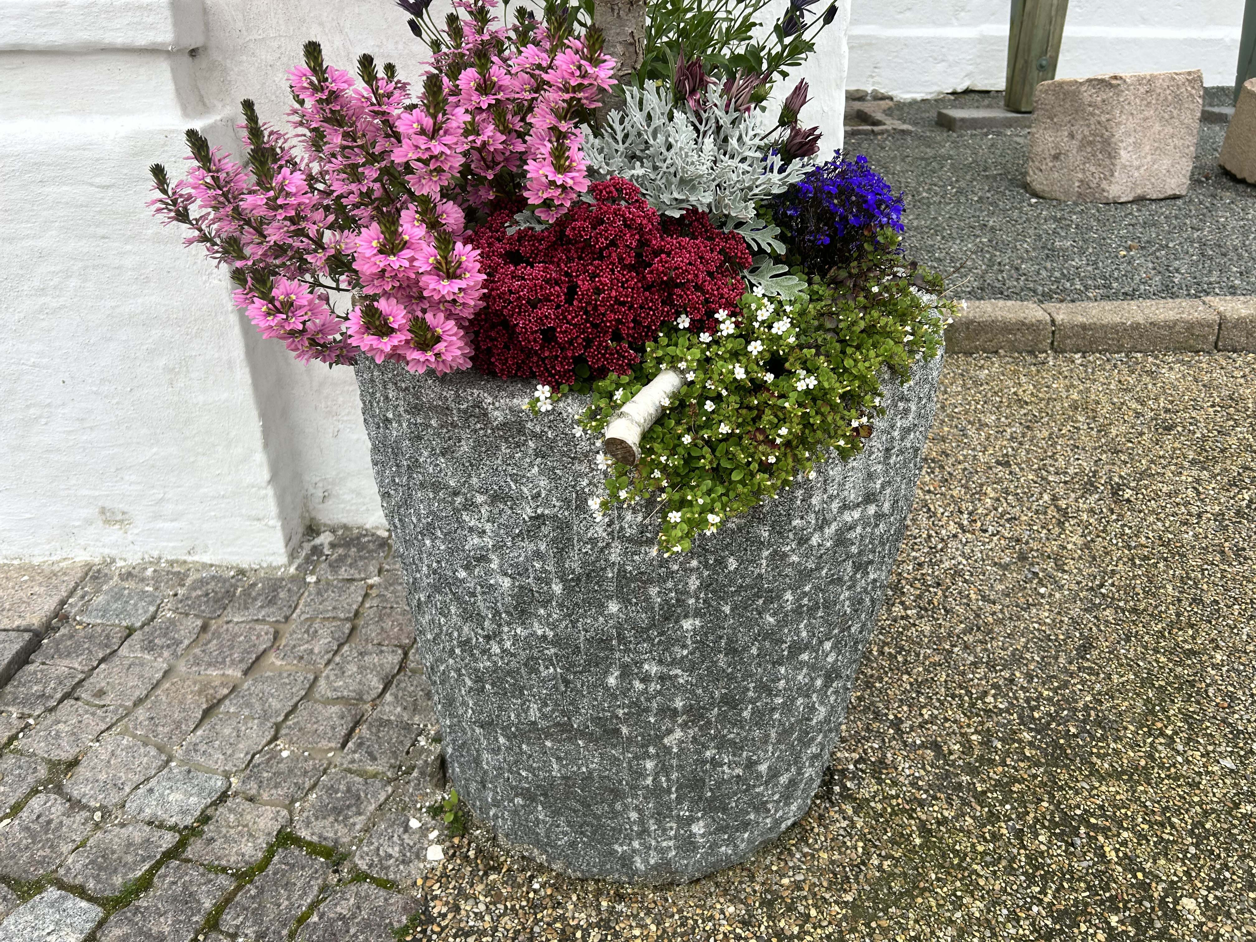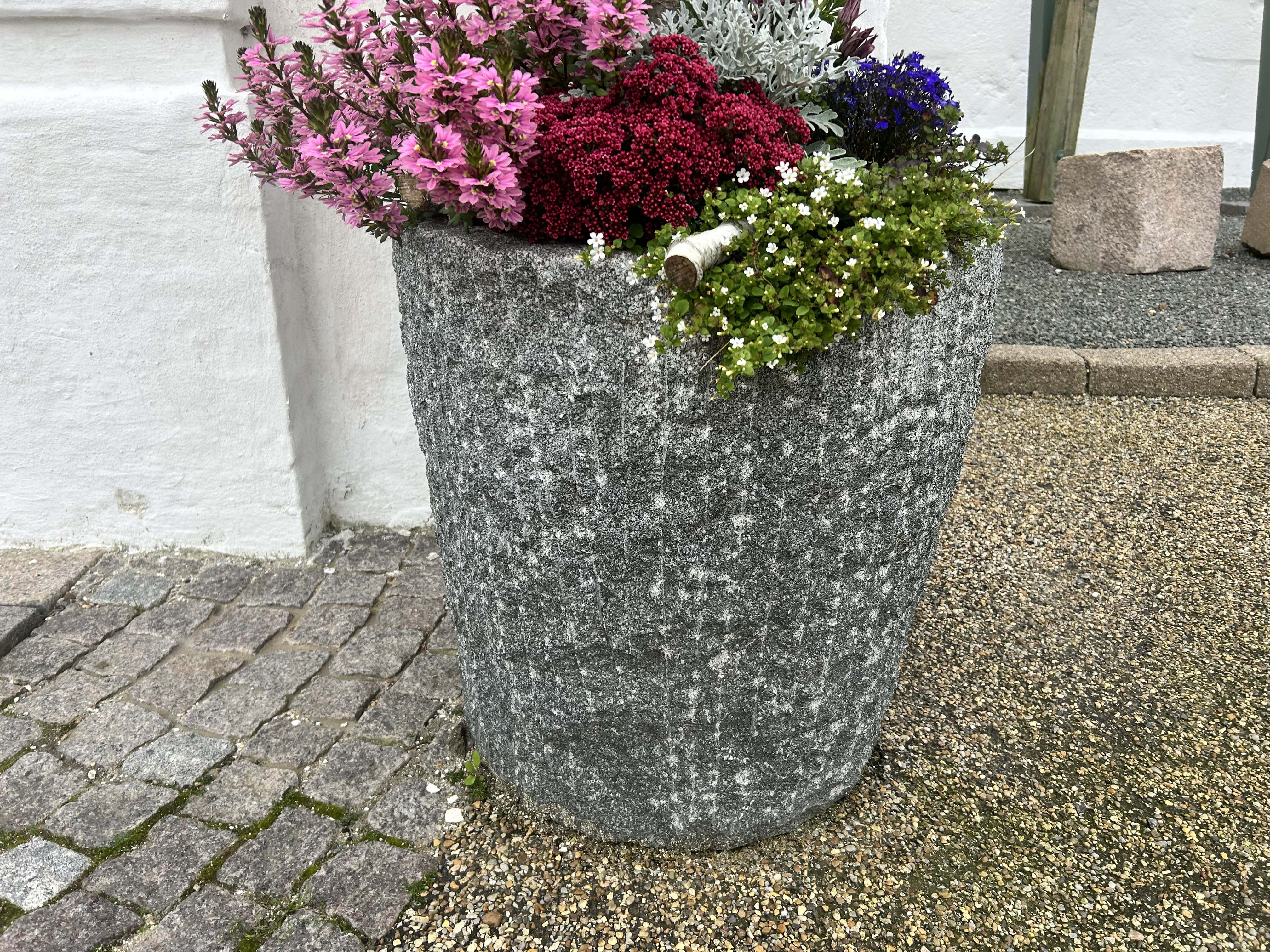 Plantetrug i gråsort råkløvet granit, konisk facon
