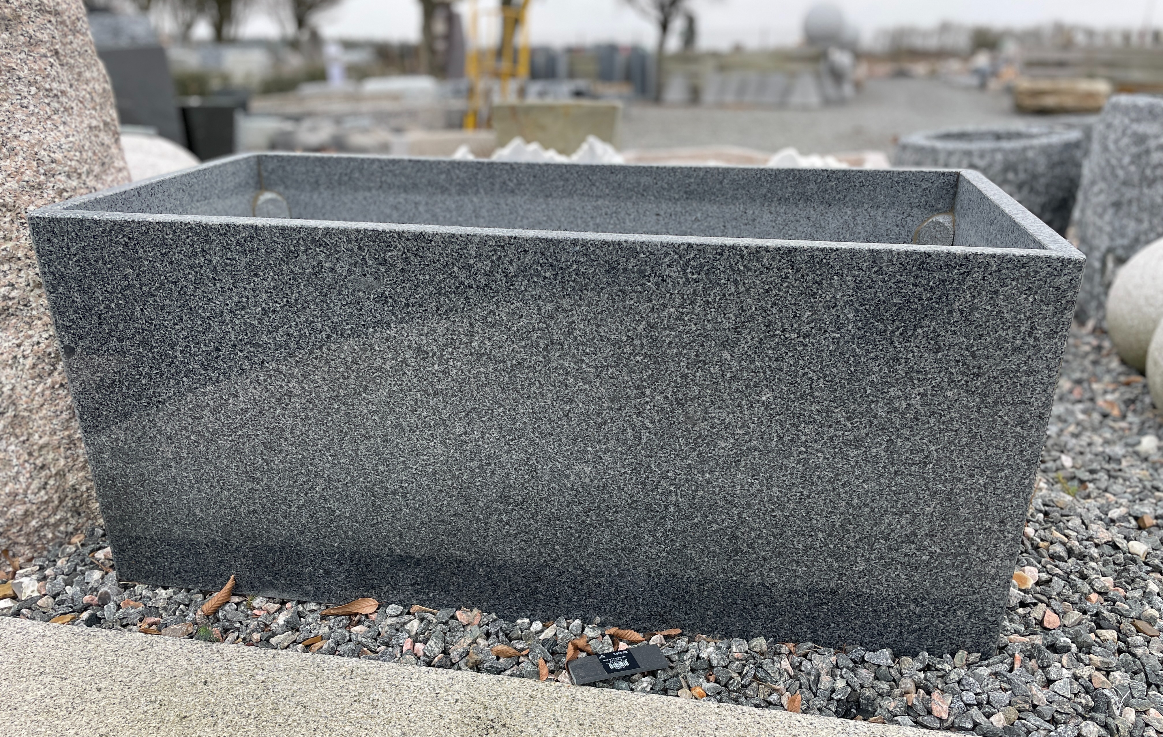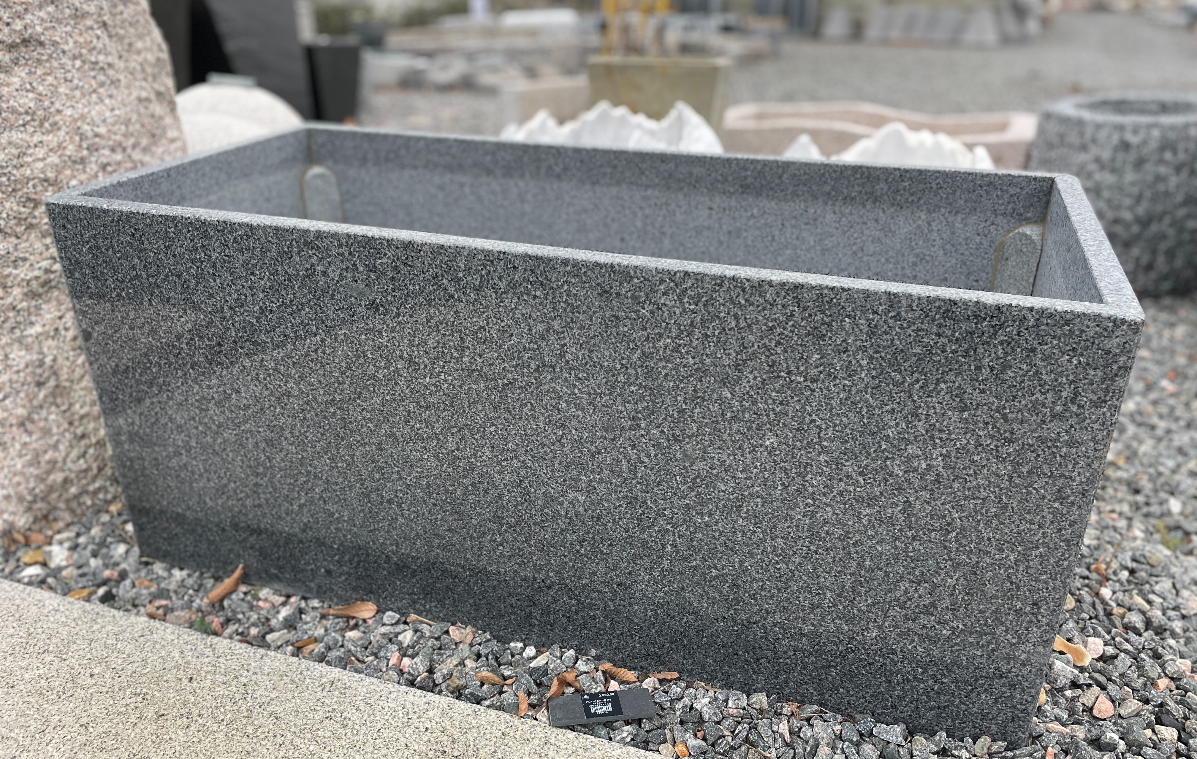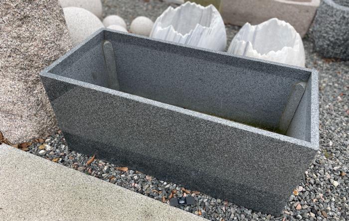Plantekumme i gråsort granit med polerede sider, der får granittens flotte farve frem. Plantekummen kan bruges til beplantning, og vil med sin skarphed stå flot langs en husmur, ved indkørsel eller på terassen.