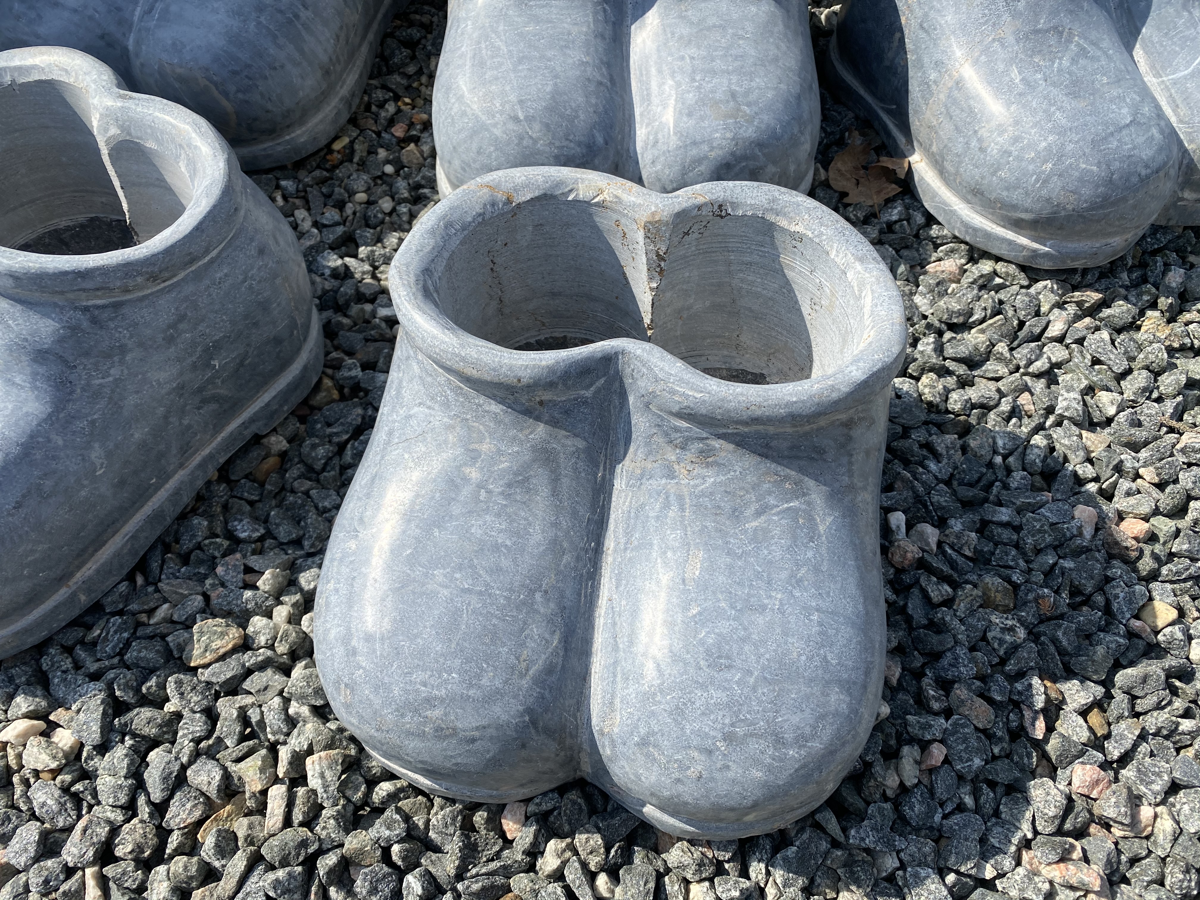 Træskoene er lavet i sort marmor og er velegent til blomster eller andet dekorativt.