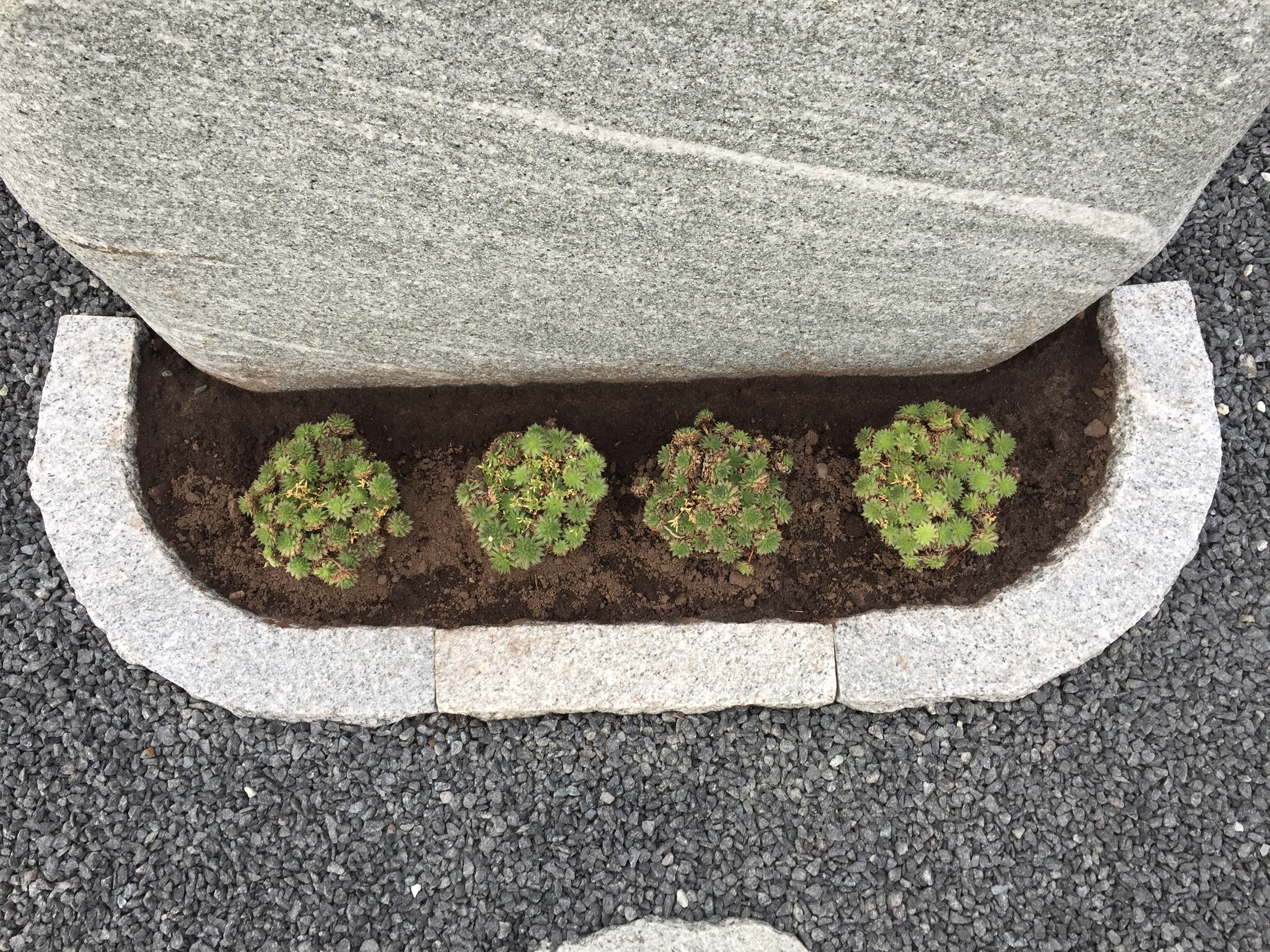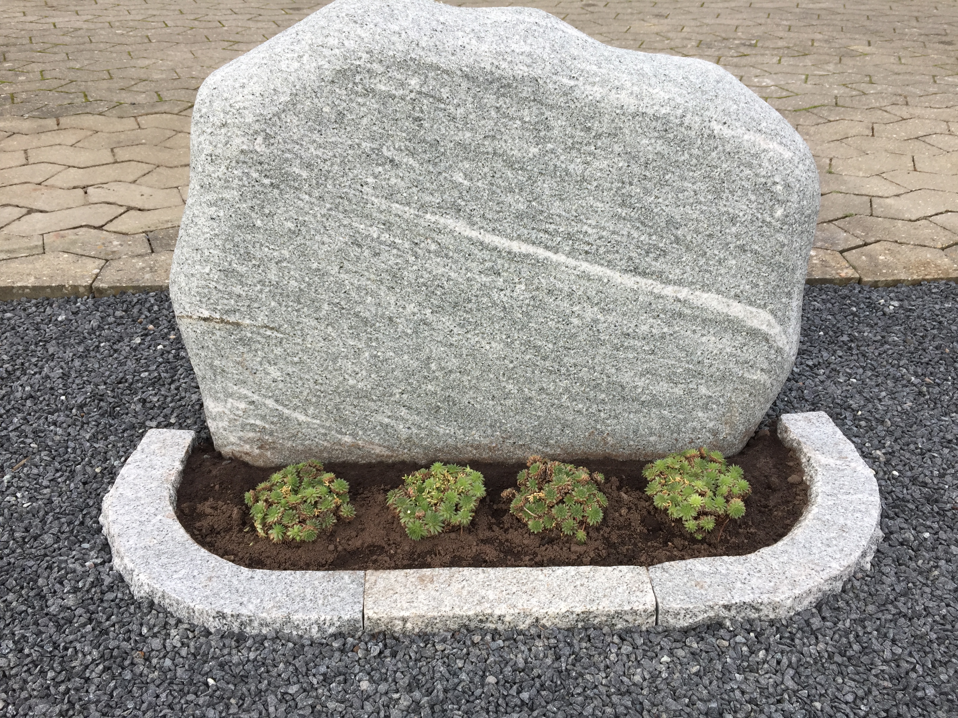 Kantbed til for eksemepel gravsted i grå indisk granit. Kanten kan bruges til bed i haven eller som på billedet til beplantning.