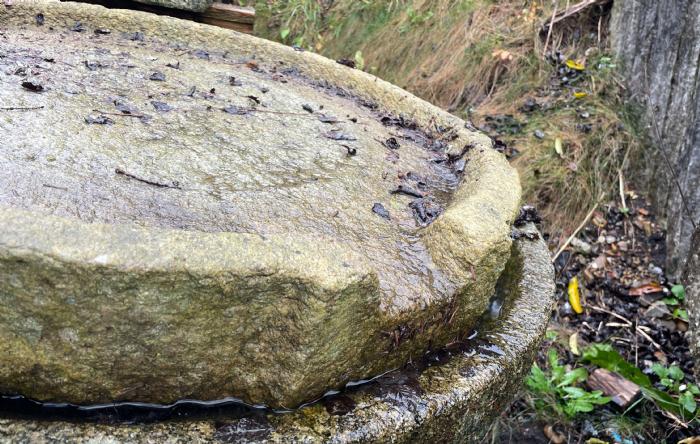 Nu genbruges stenene som vandsten eller dekorationssten i haven. Denne type møllesten har en tud, der gør det muligt at have vand til at løbe. Stenen kan bruges til planter eller andre dekorative elementer i haven.
