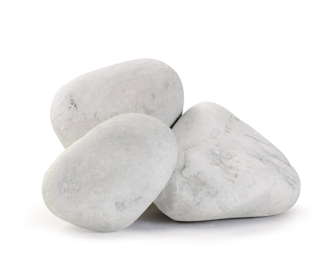 Hvide marmor søsten med bløde afrundede former. Fortrinlig dekorationssten til mange formål.