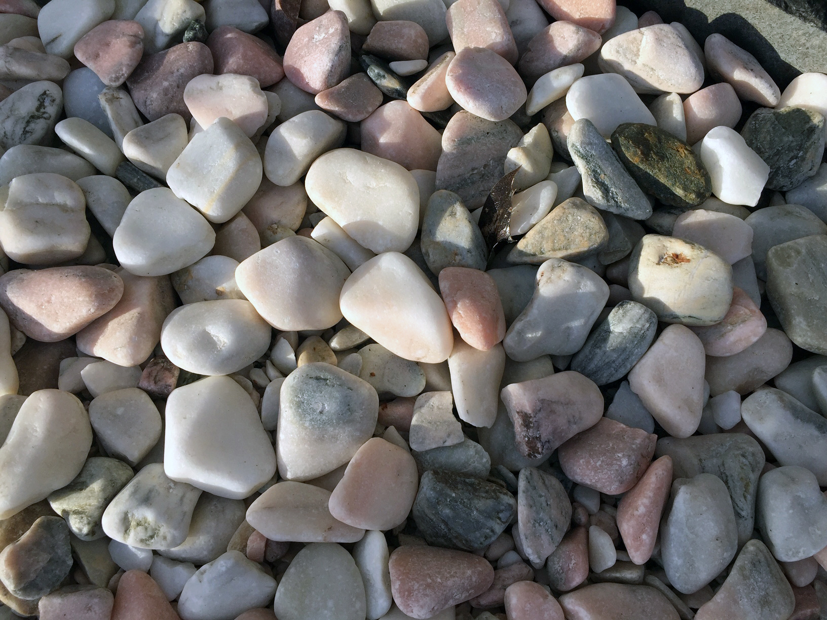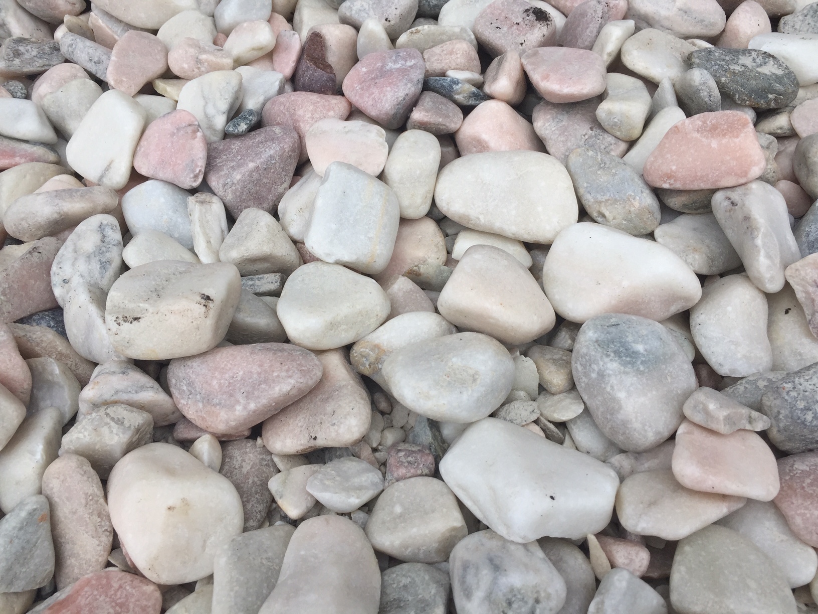 Stenene er meget lyse ved modtagelse på grund af støv fra tromling.