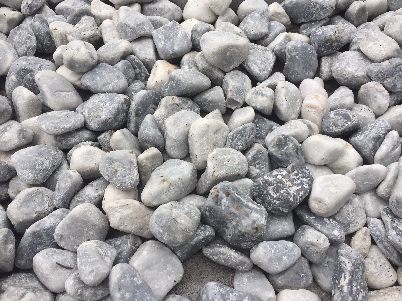 Søsten i hvid/blålig nuancer med matslebet overflade. Meget fine som dekoration i et havebed er langs husmuren