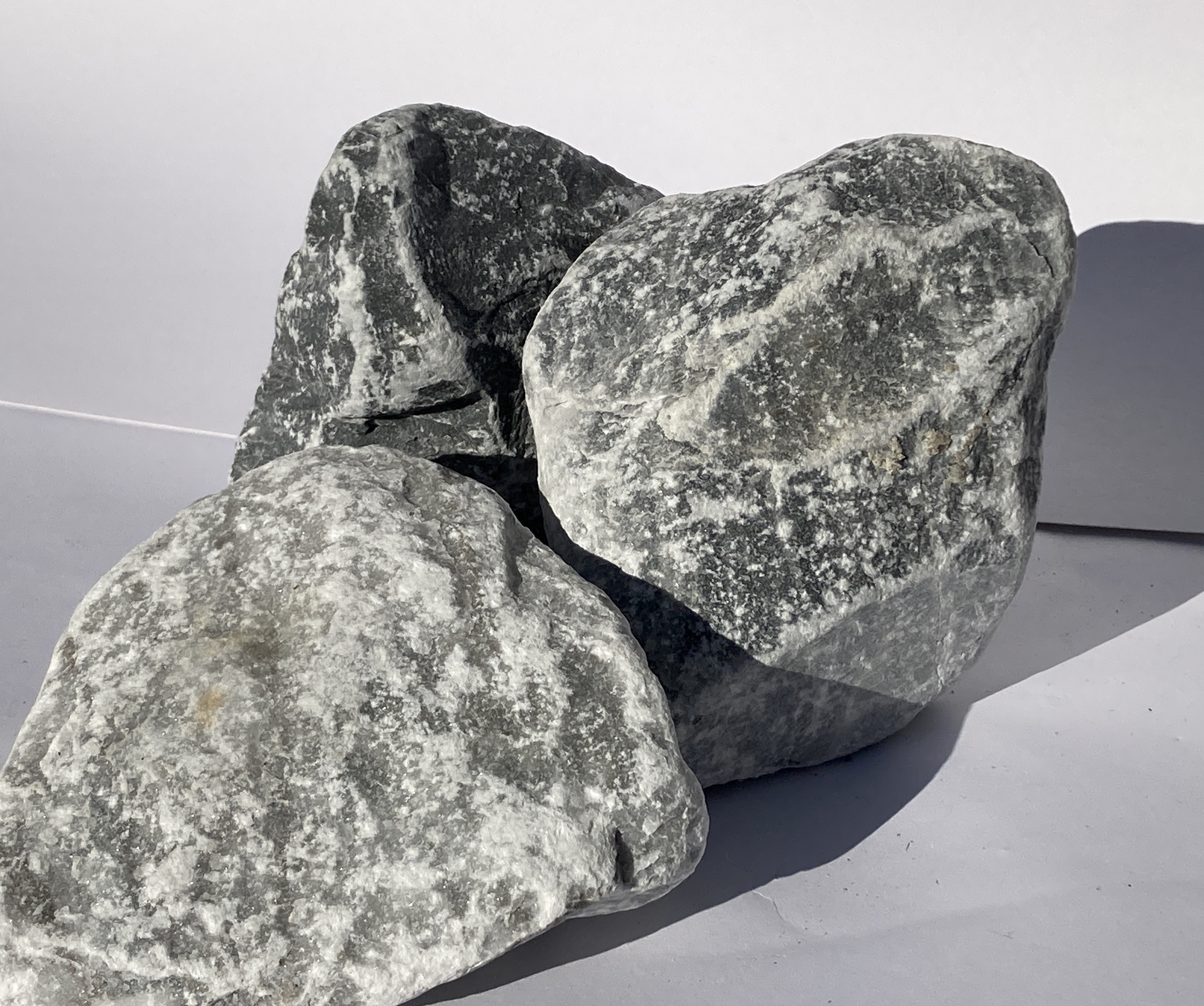 Dekorativ lille sprængstykke i grå/blå natursten fra Italien. Rå klippestykker til dekoration. Pyntesten, der kan have mange forskellige formål i haven eller til kreative ideer.
