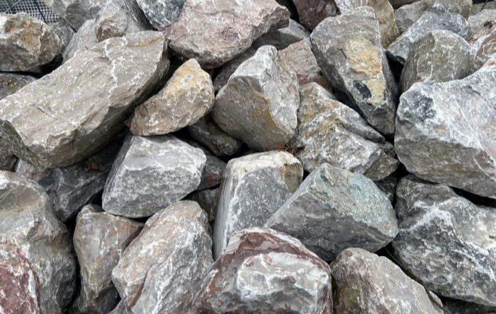Sprængstykke i Nordisk Mix. Et farvespænd med grå, brune, røde og orange farver. Sprængstykkerne kan købes enkelt stk eller i et bur af 1500 kg.