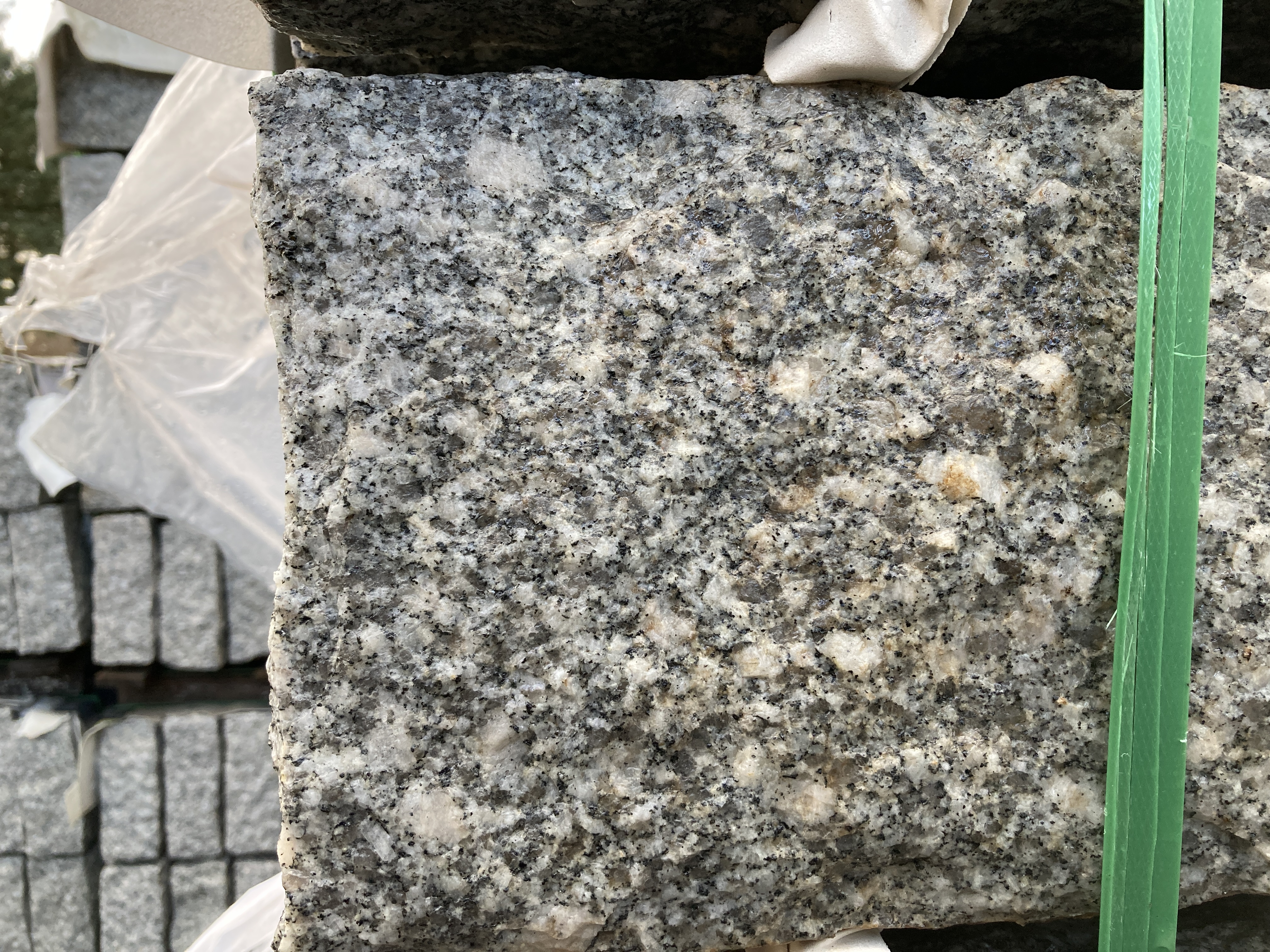 Bunden på kantstenene, der er beregnet til nedgravning, har grovere struktur end top og front.