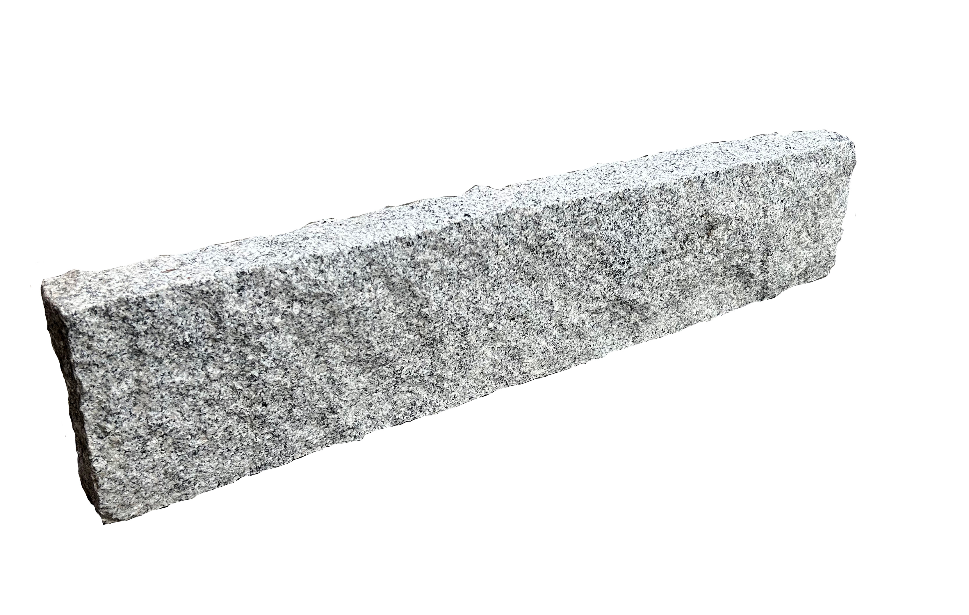 Kantstenen er produceret i gråmeleret granit med rustikke, råkløvede overflader. Det er en stabil afgrænsning af for eksempel havebedet, grusgangen eller græsplænen.