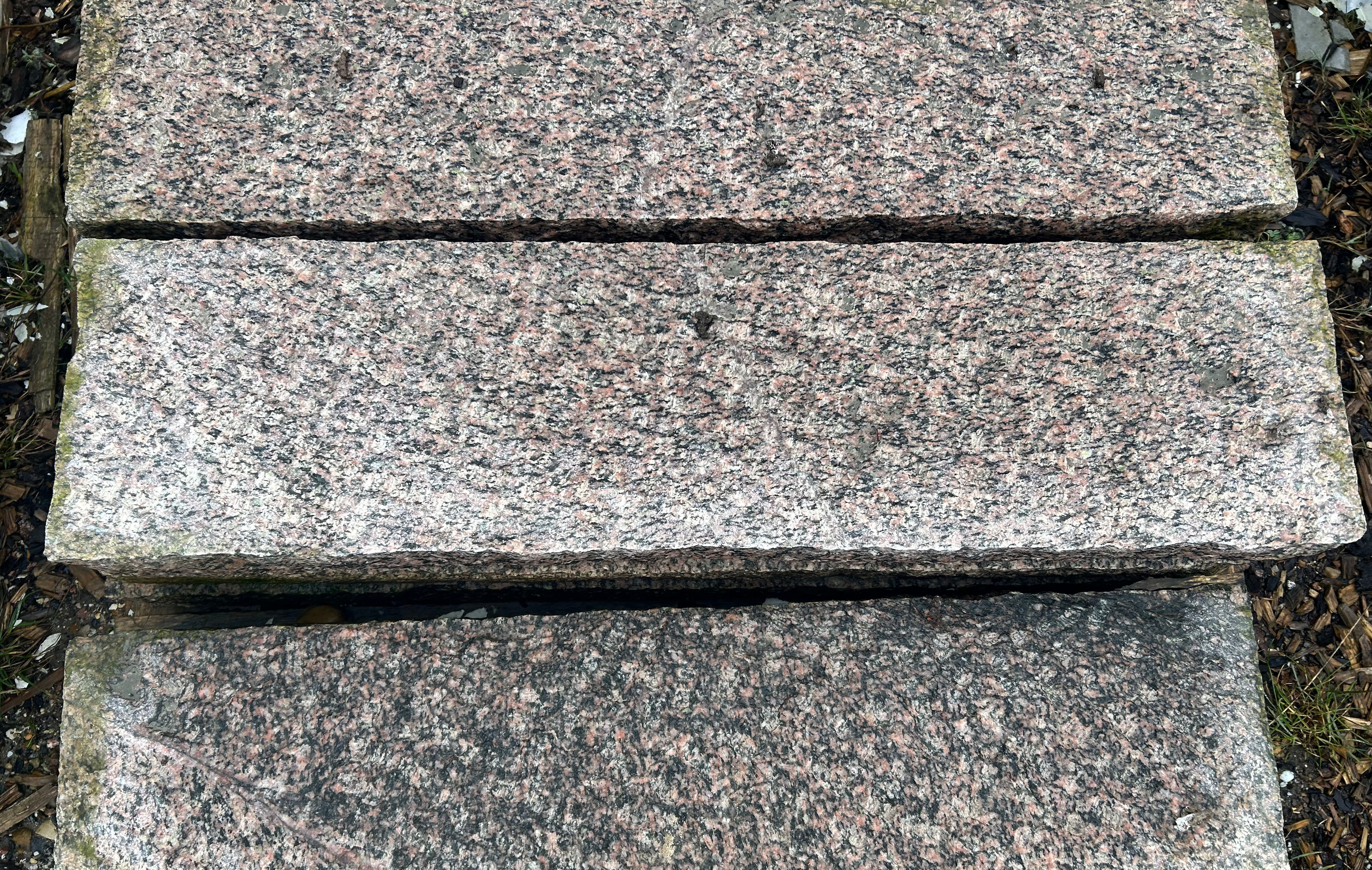 Bunden på kantstenene, der er beregnet til nedgravning, har grovere struktur end top og front
