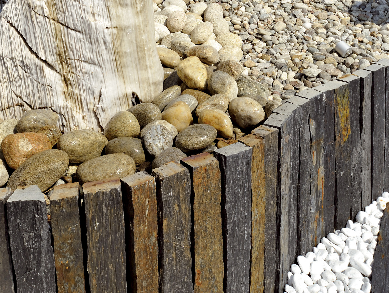 Sort og naturfarvet italiensk skifer med et virkeligt smukt rustikt udtryk. Palisadestenene anvendes typisk ved etablering af støttemur, læmur, kantafgrænsning eller kantsten. Også særdeles velegnet til opbygning af kant til bålsted. Stenen har rustikke ender og disse ender giver også et særligt udtryk, hvis enderne vendes opad. Kan naturligvis deles/saves til andre længder mod et tillæg
