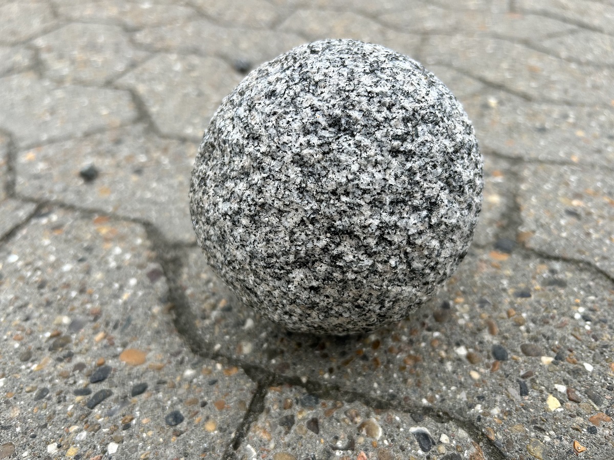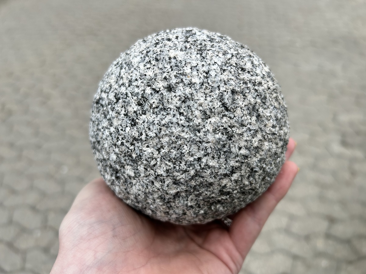 Granitkugle i lys grå på diameter 10 cm.