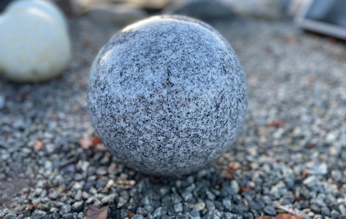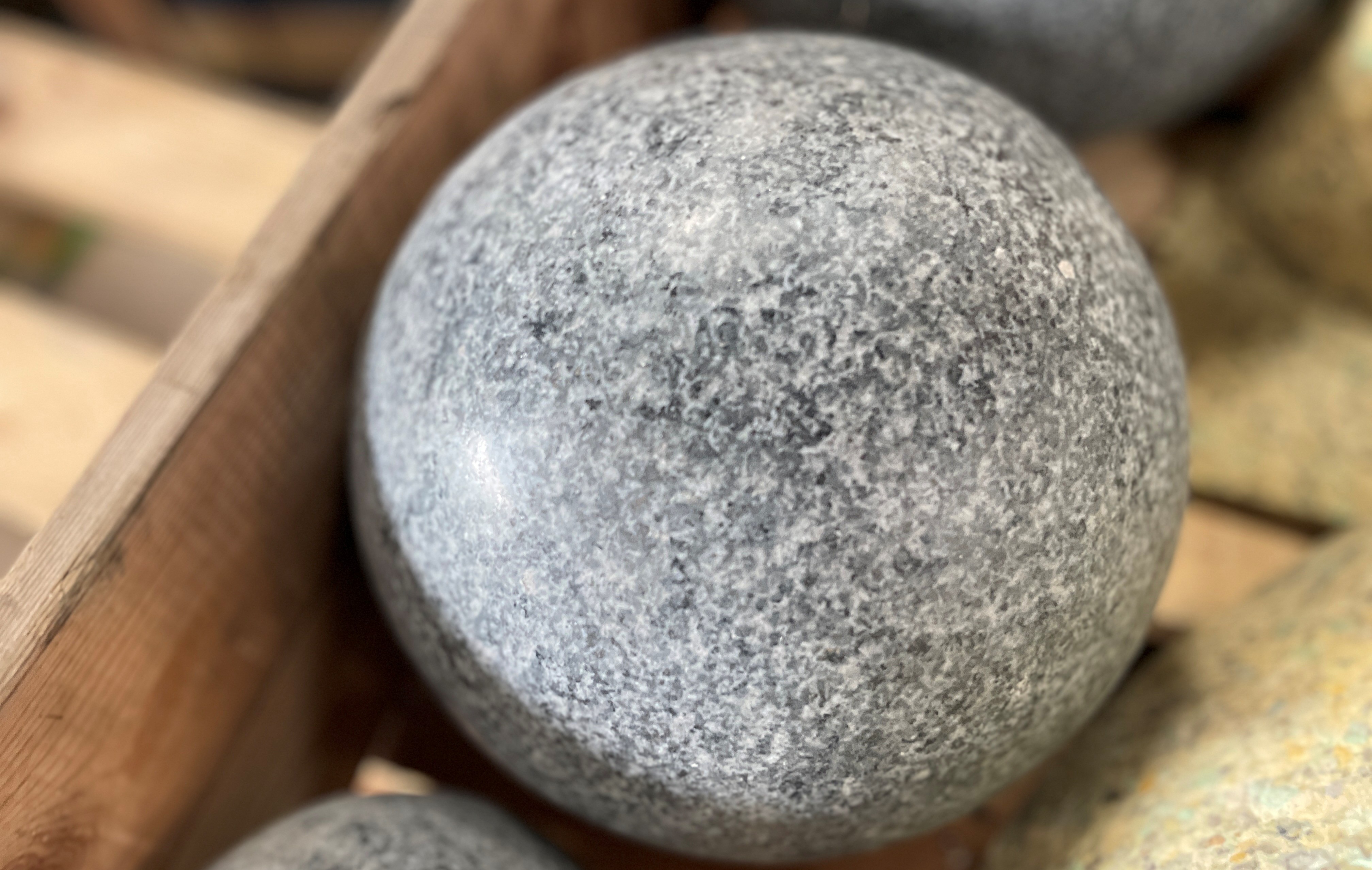 Granit kugle produceret i gråsort eller lysegrå granit. Kuglerne har en poleret overflade som skaber et flot farvespil i granitten.
