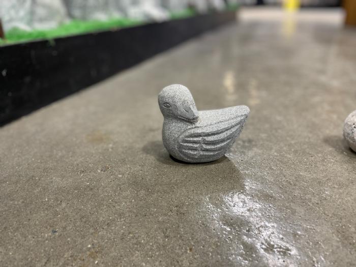 En sød håndhugget and i grå eller rosa granit.