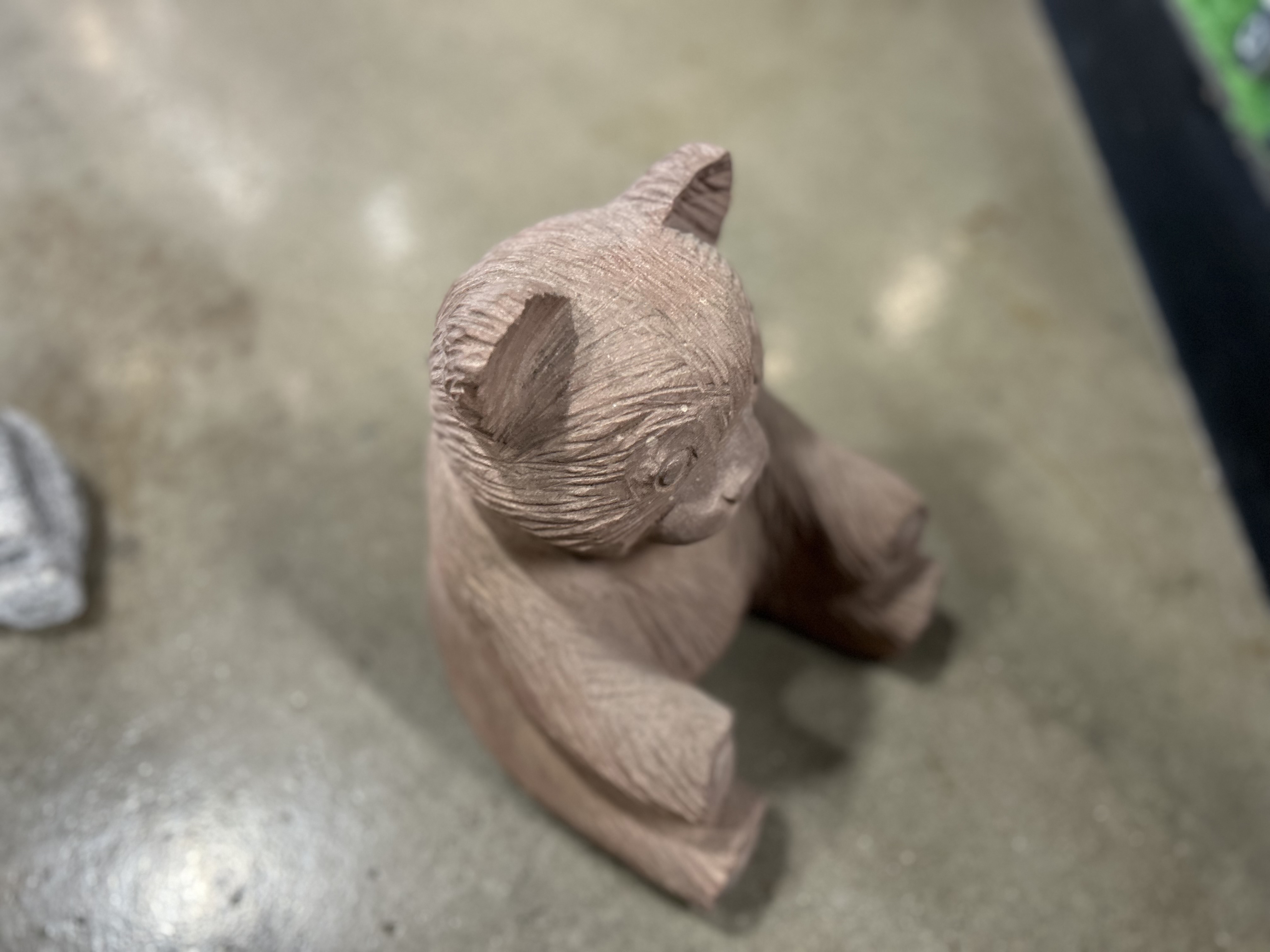 Siddende bjørn i rød natursten. Den lille bamse eller bjørn har et sødt udtryk og den rød/brune farve gør den utrolig varm og plysset at se på.