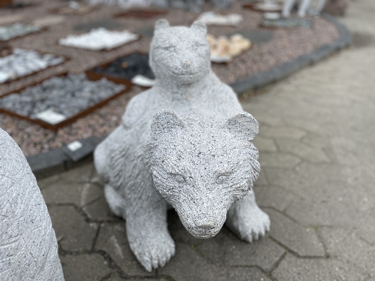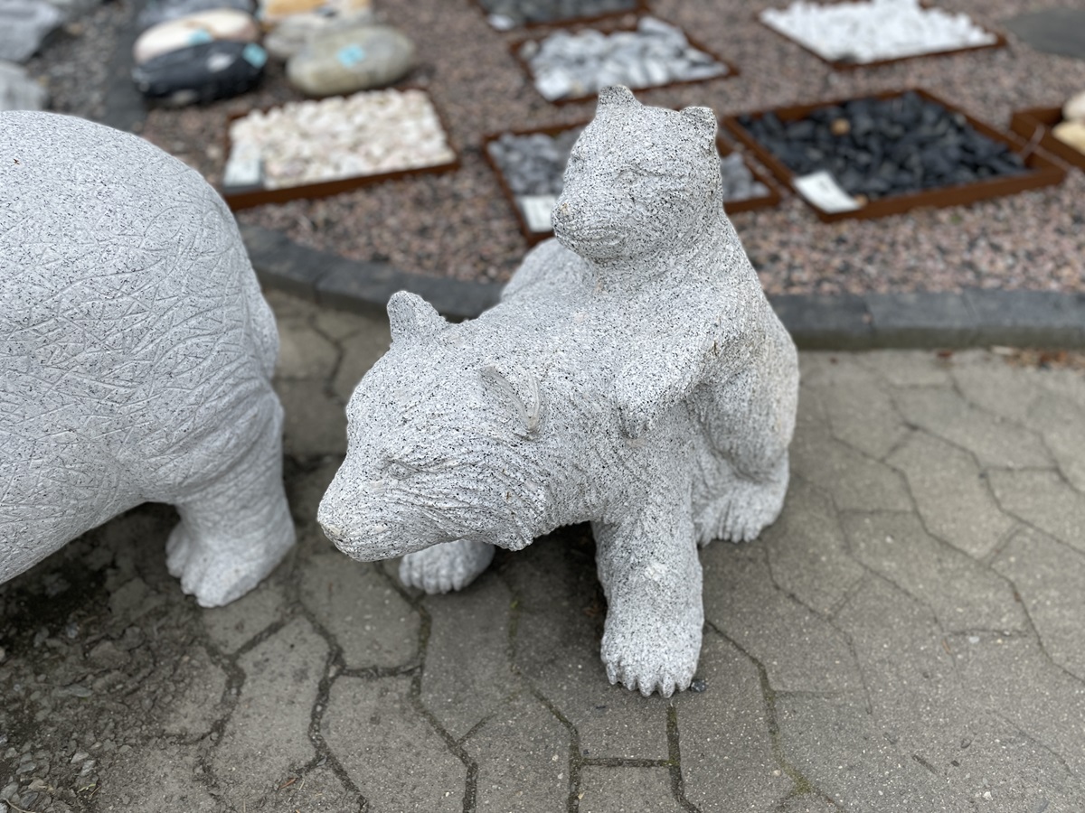 Bjørnefamilie i lysegrå granit