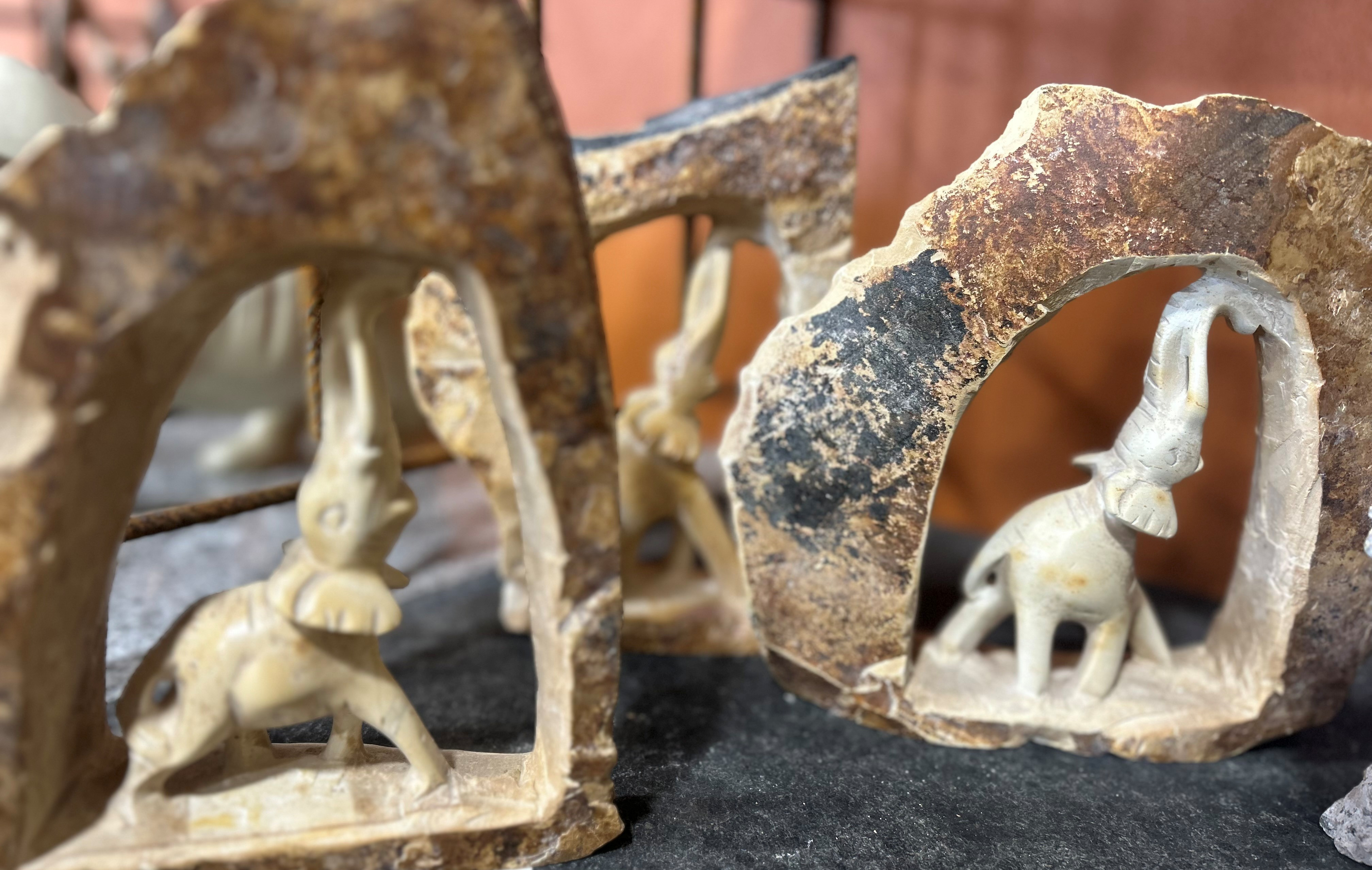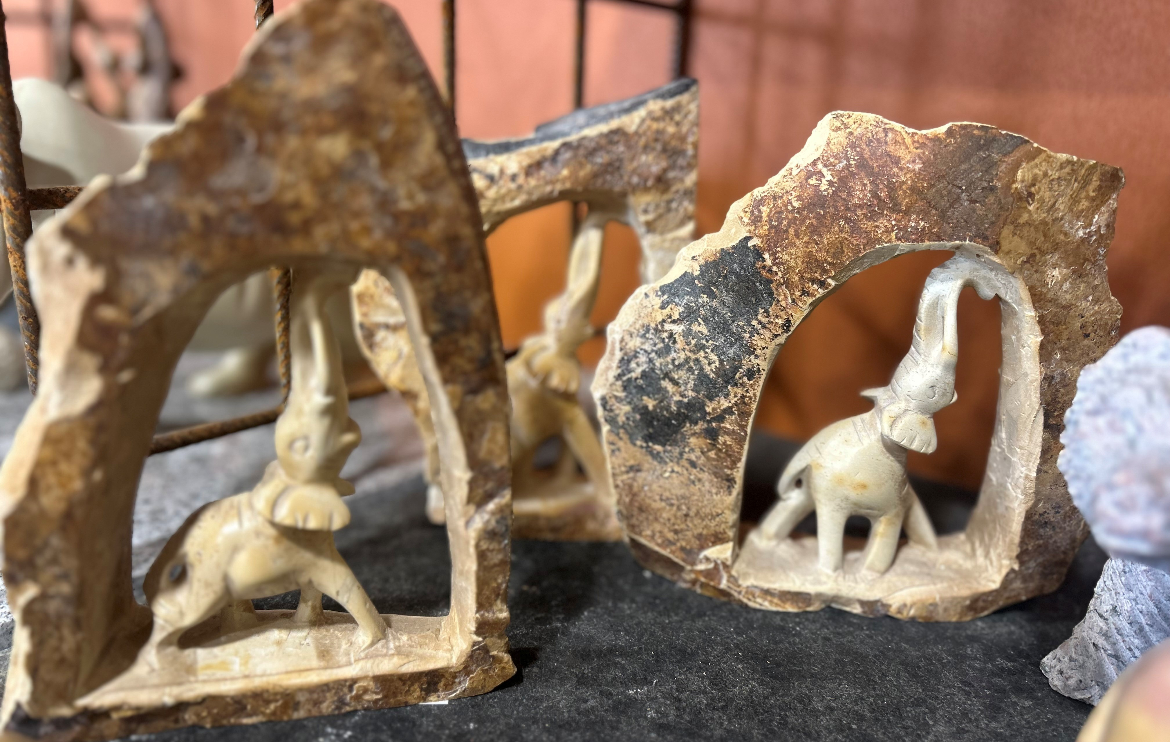 Unika figur af en elefant i rusik fedtsten. Figuren er lavet ud-i-et stykke fedsten. Hver figur er unik og mål er derfor vejledende.