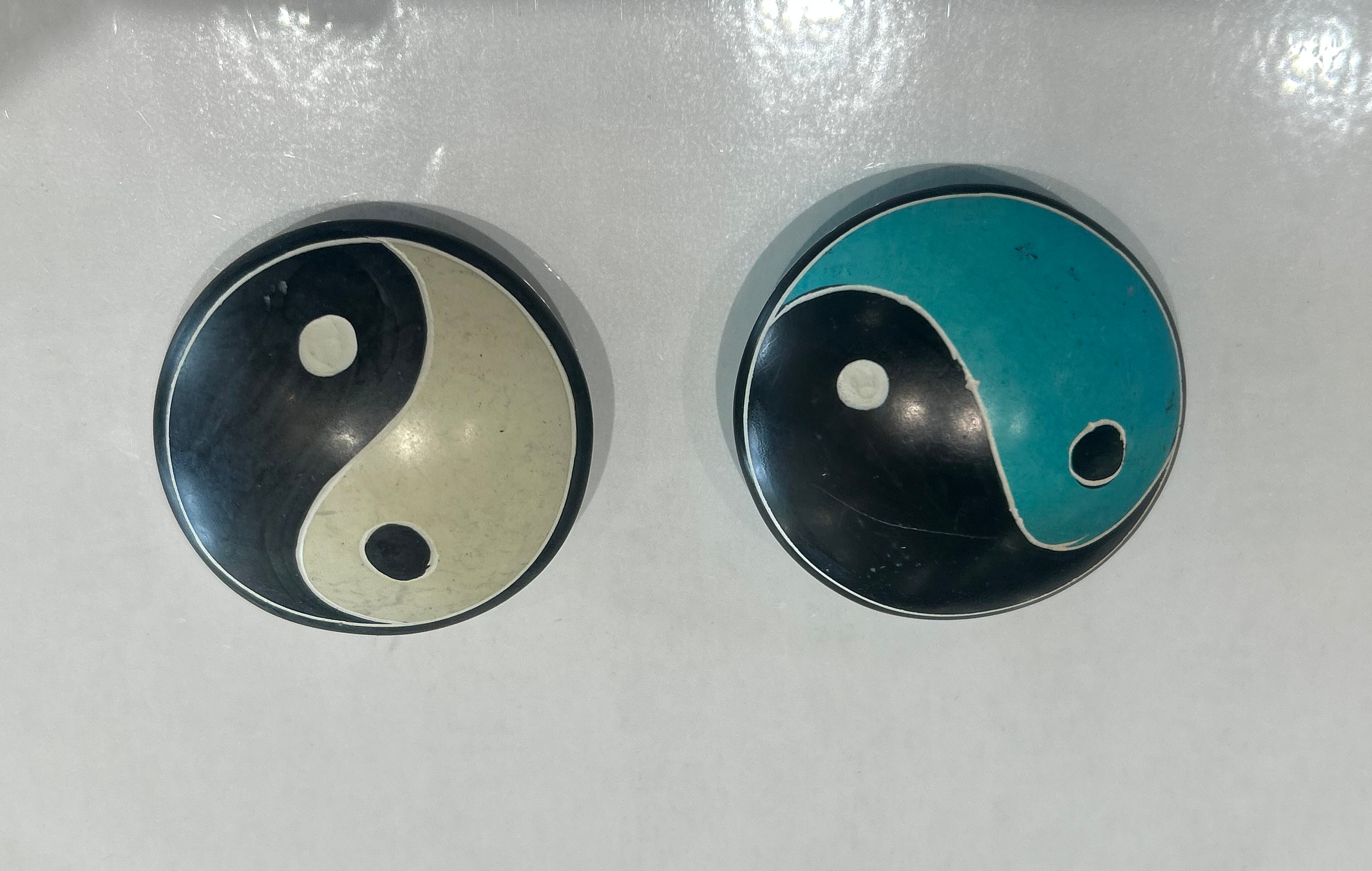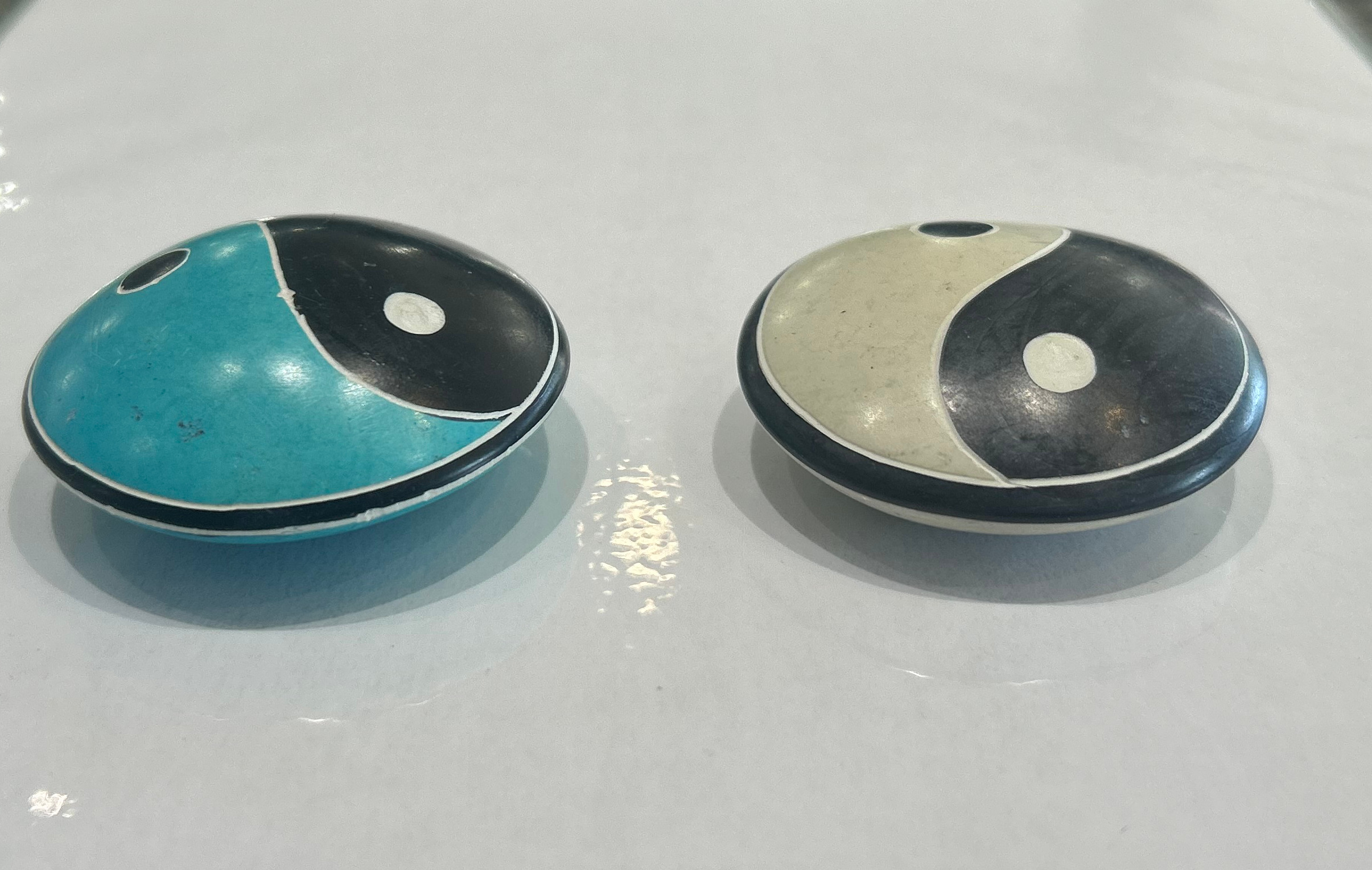 Fedtsten yin yang i hvid eller blå.