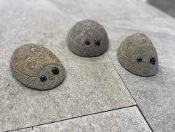 Flynder lavet i natursten, i forskellige farver og personligheder.