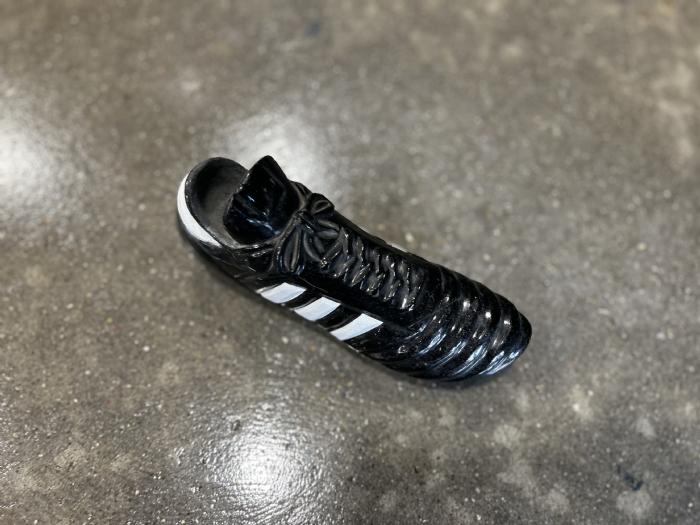 Fodboldstøvle i sort poleret granit med hvide detaljer. En utrolig fin lille støvle til en fodbold elsker, årets træner eller måske bare en god ven.