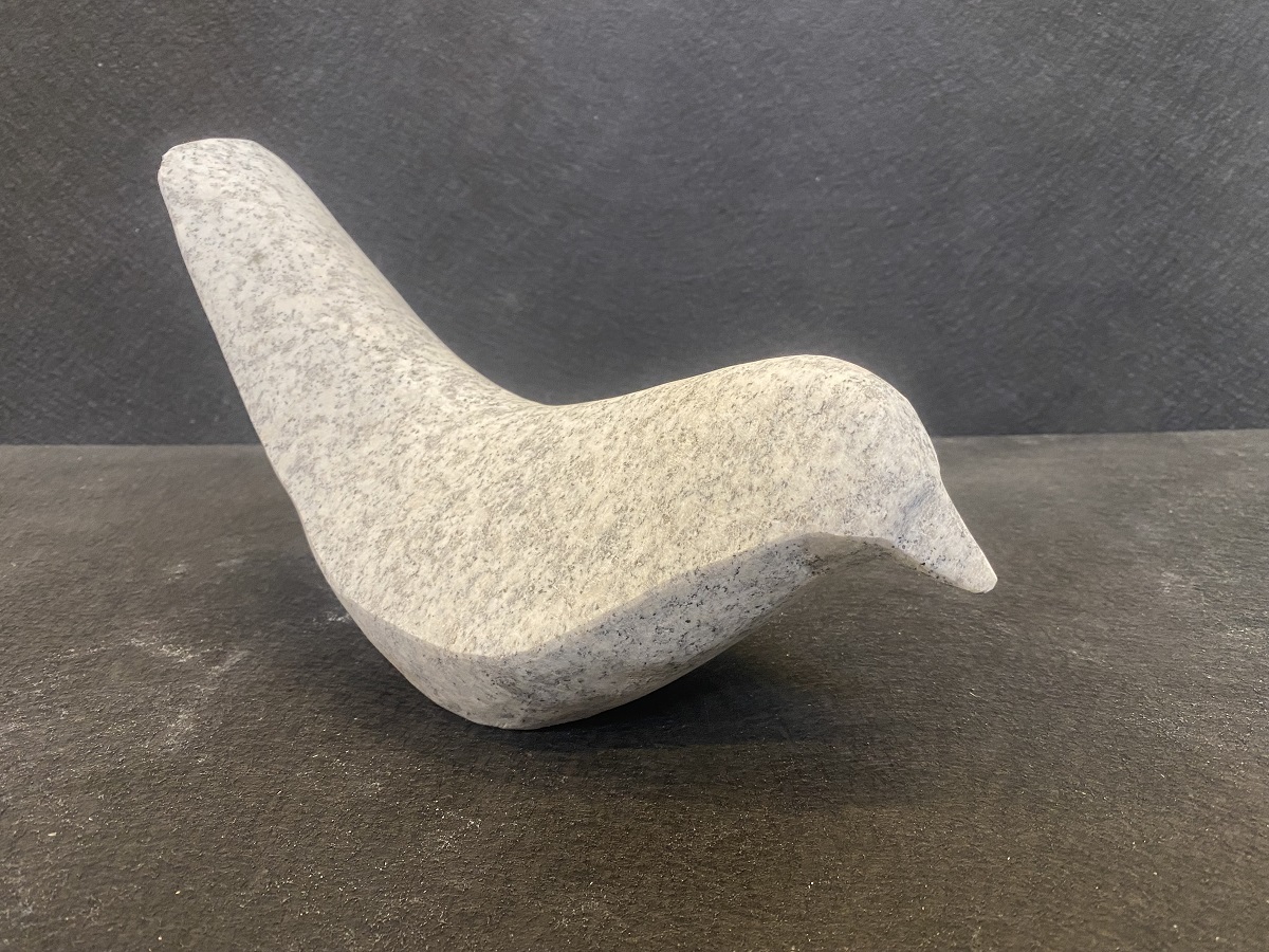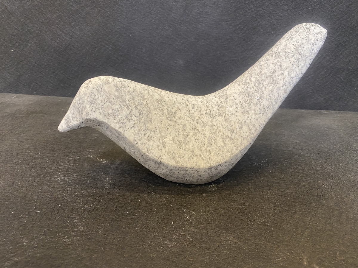 Abstrakt fugl i lys grå granit.